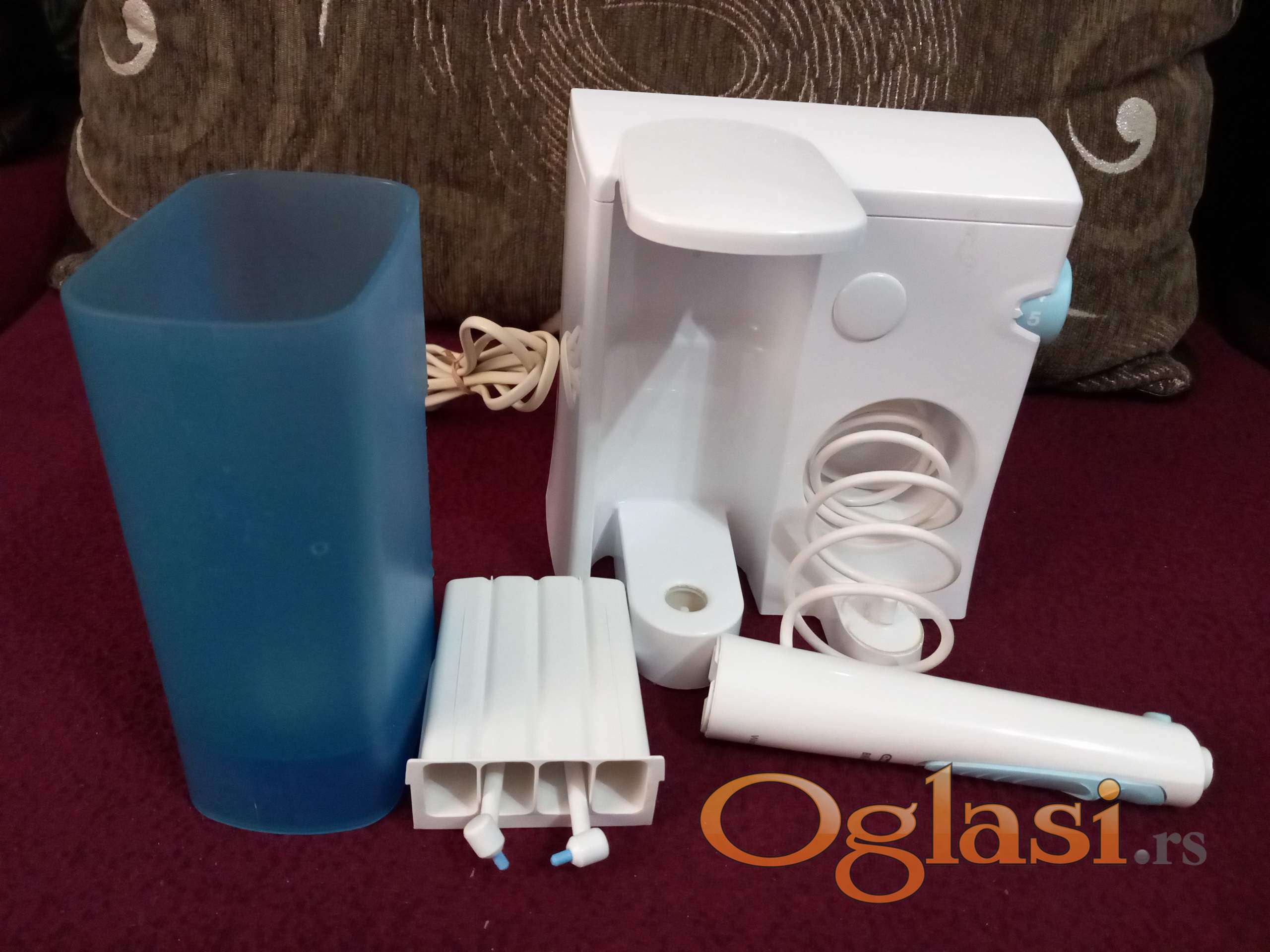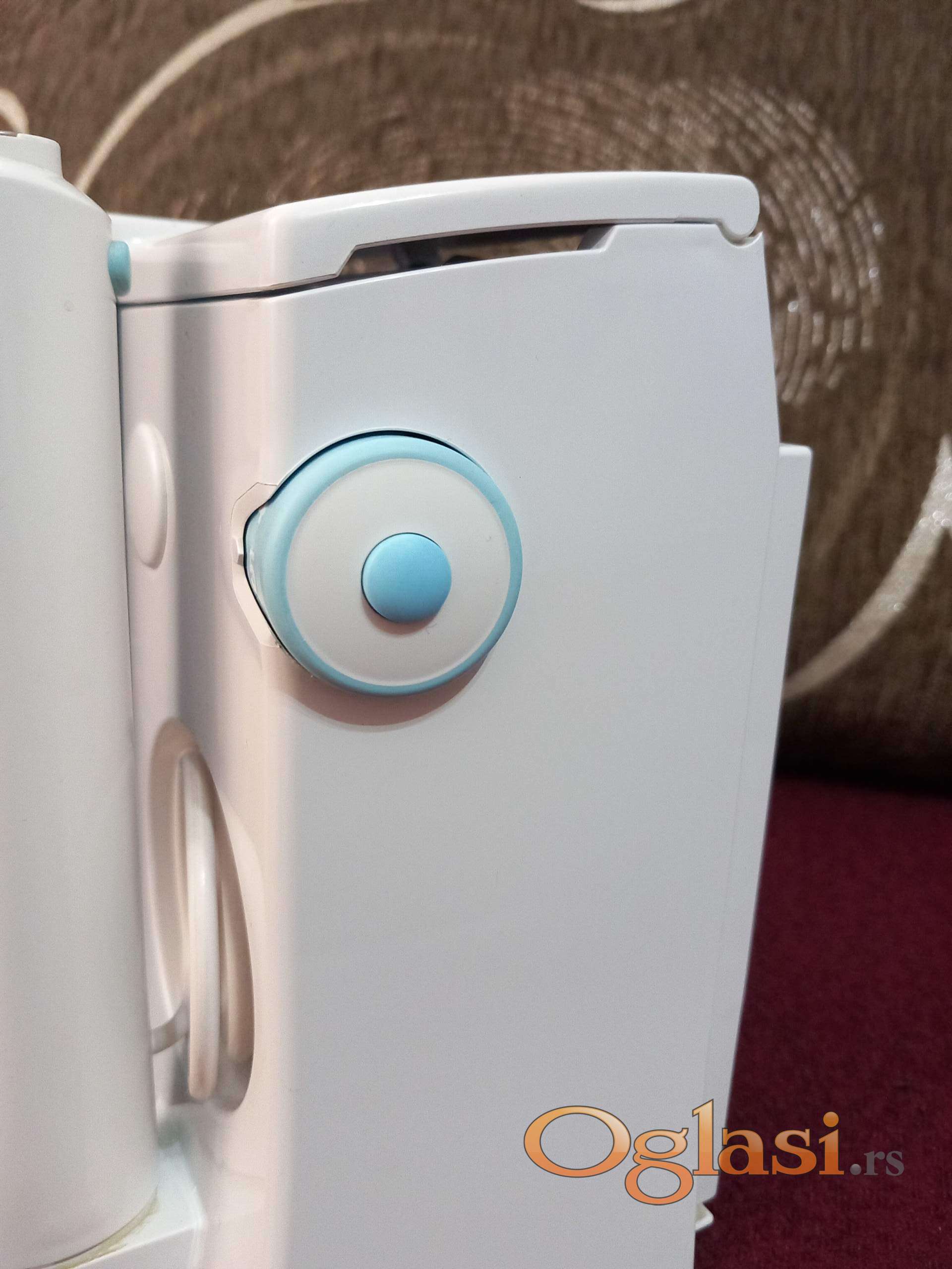 Nemacki IRIGATOR-APARAT ZA TUSIRANJE ZUBA marke ORAL B BrAun. Stavljena dva nova nastavka, moze da radi usmerenim mlazom ili kao snop prebacivanjem kvacice na gornjem delu cetkice. ima regulacija brzina . ..