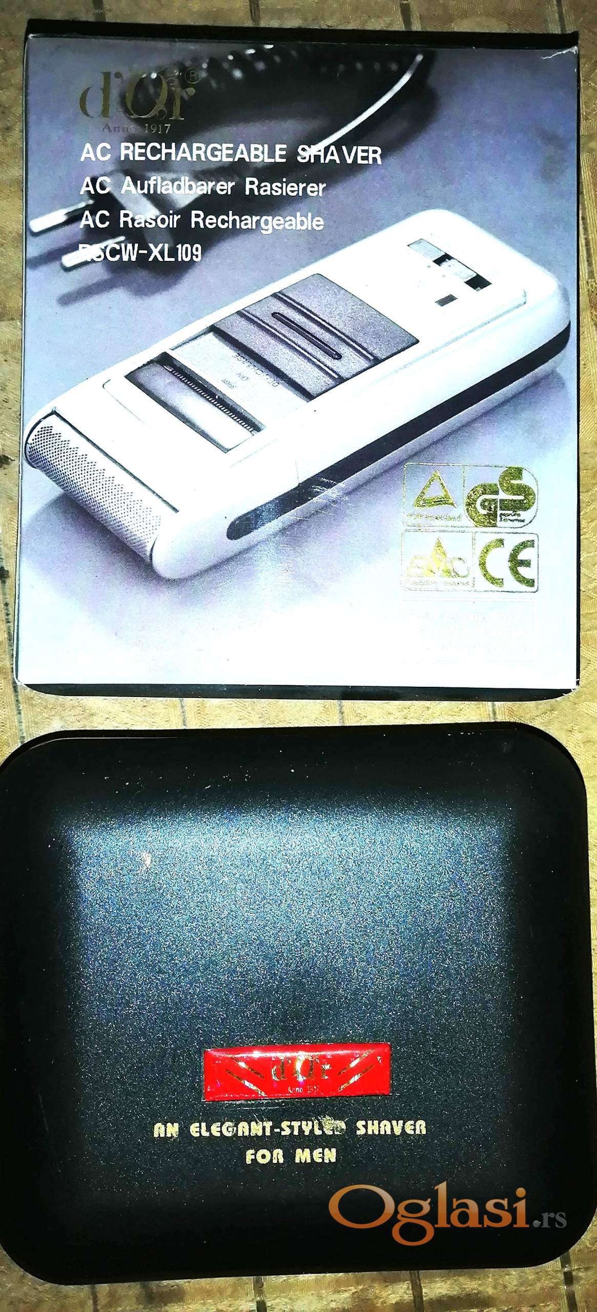 Veoma povoljno prodajem neupotrebljavan električni aparat za brijanje brenda "DeOr", u originalnom pakovanju, sa pripadajućim kablom za napajanje i rezervnom mrežicom. Boja - kombinacija sivo-crno (napomena: na slici je originalna kutija sa belom varijantom aparata!);