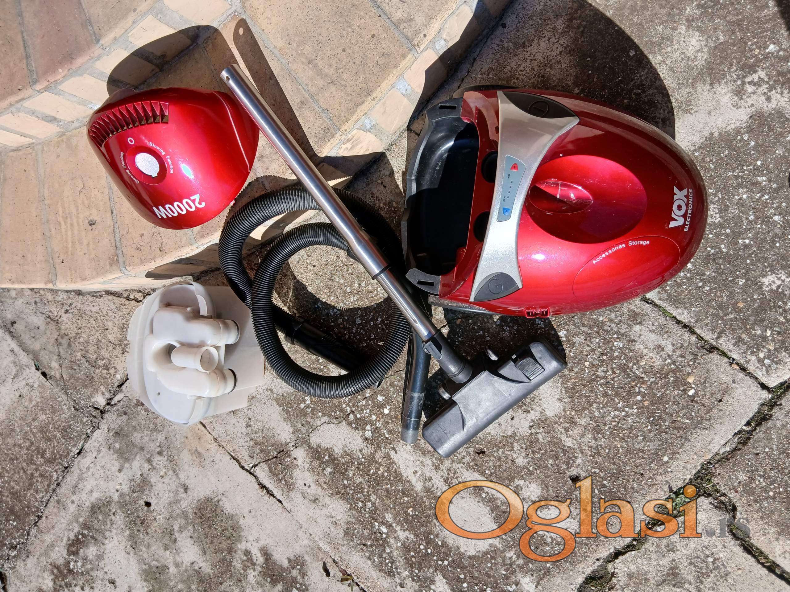 Usisivač Vox vlažno čišćenje, vodeni filter, upravljanje na telu aparata, elektronska regulacija snage usisavanja regulatorom, automatsko namotavanje kabla, dužina kabla 4,5 m., velika usisna moć, metalna telekopska cev za podešavanje na individualnu visinu tela, sastavljiva cev za usisivanje, snaga 2000w.