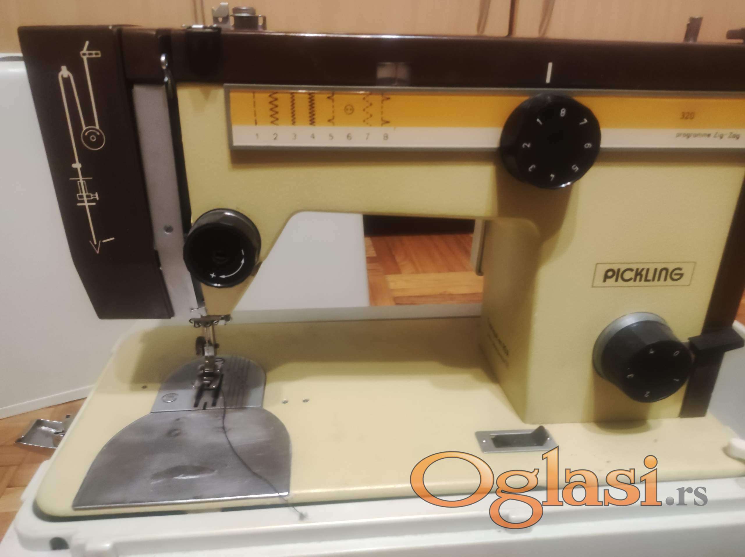 Povoljno prodajem korišćenu mašinu za šivenje marke PICKLING 320 u potpuno ispravnom stanju. Mašina može da pravi 5 različitih vezova čiji se bod može dodatno podešavati po dužini, a cik-cak i po širini, zatim ima mogućnosti šivenja unazad, podešavanja pritiska stopice na materijal, isključenja transporta, mašinskog namotavanja konca na kalem i osvetljenja radne površine. Izgled vezova prikazan je na slici.