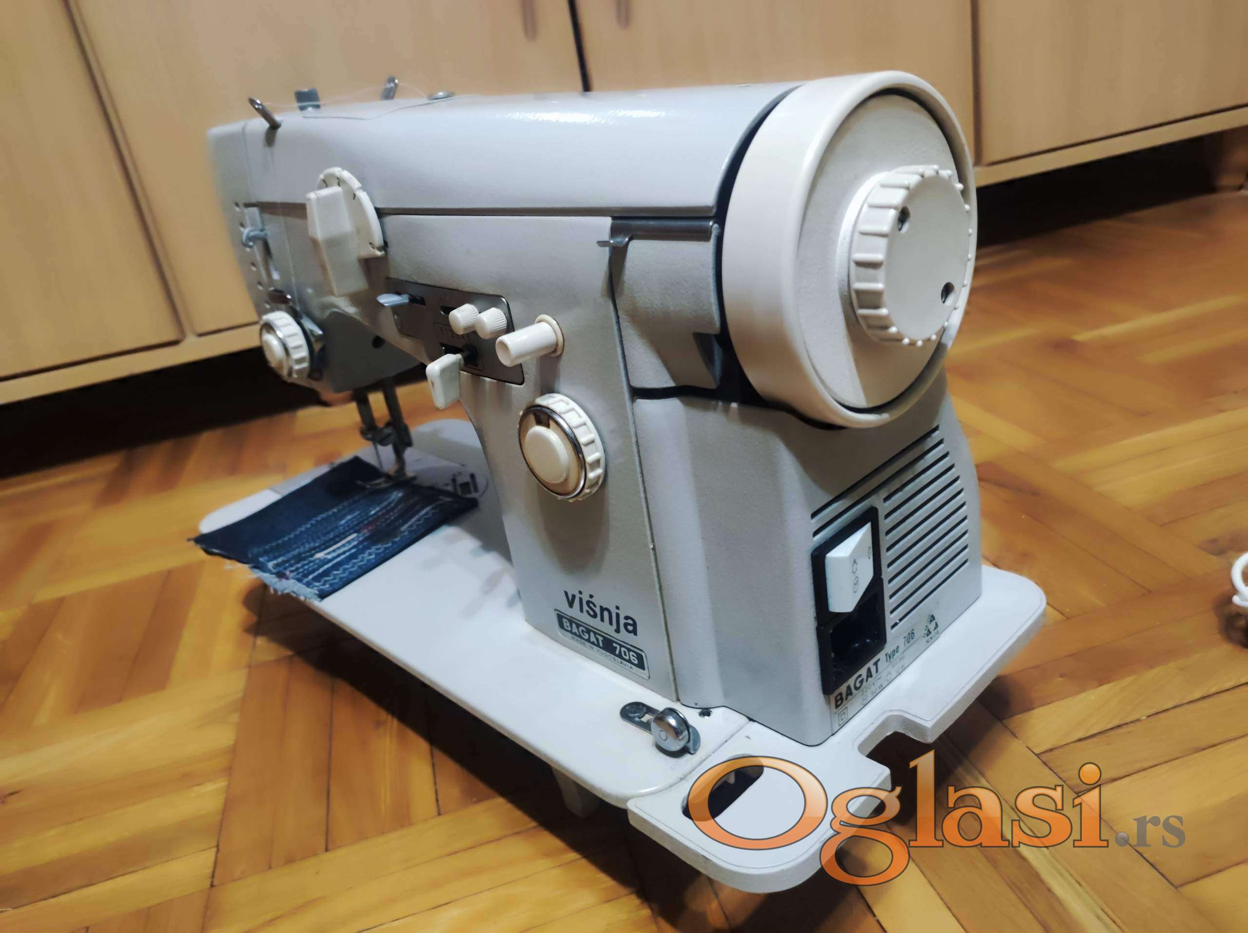 Povoljno prodajem korišćenu mašinu za šivenje marke BAGAT Višnja 706 u potpuno ispravnom stanju. Mašina može da pravi ravni i cik-cak vez čiji se bod može dodatno podešavati po dužini, a cik-cak i po širini, zatim ima mogućnosti izrade i dodatnih vezova umetanjem plastičnih šablona (jedan u kompletu sa mašinom), automatskog opšivanja rupica za dugmiće, šivenja unazad, isključenja transportnih zuba, podešavanja pritiska stopice na materijal, mašinskog namotavanja konca na kalem i osvetljenja radne površine. Izgled vezova prikazan je na slici.