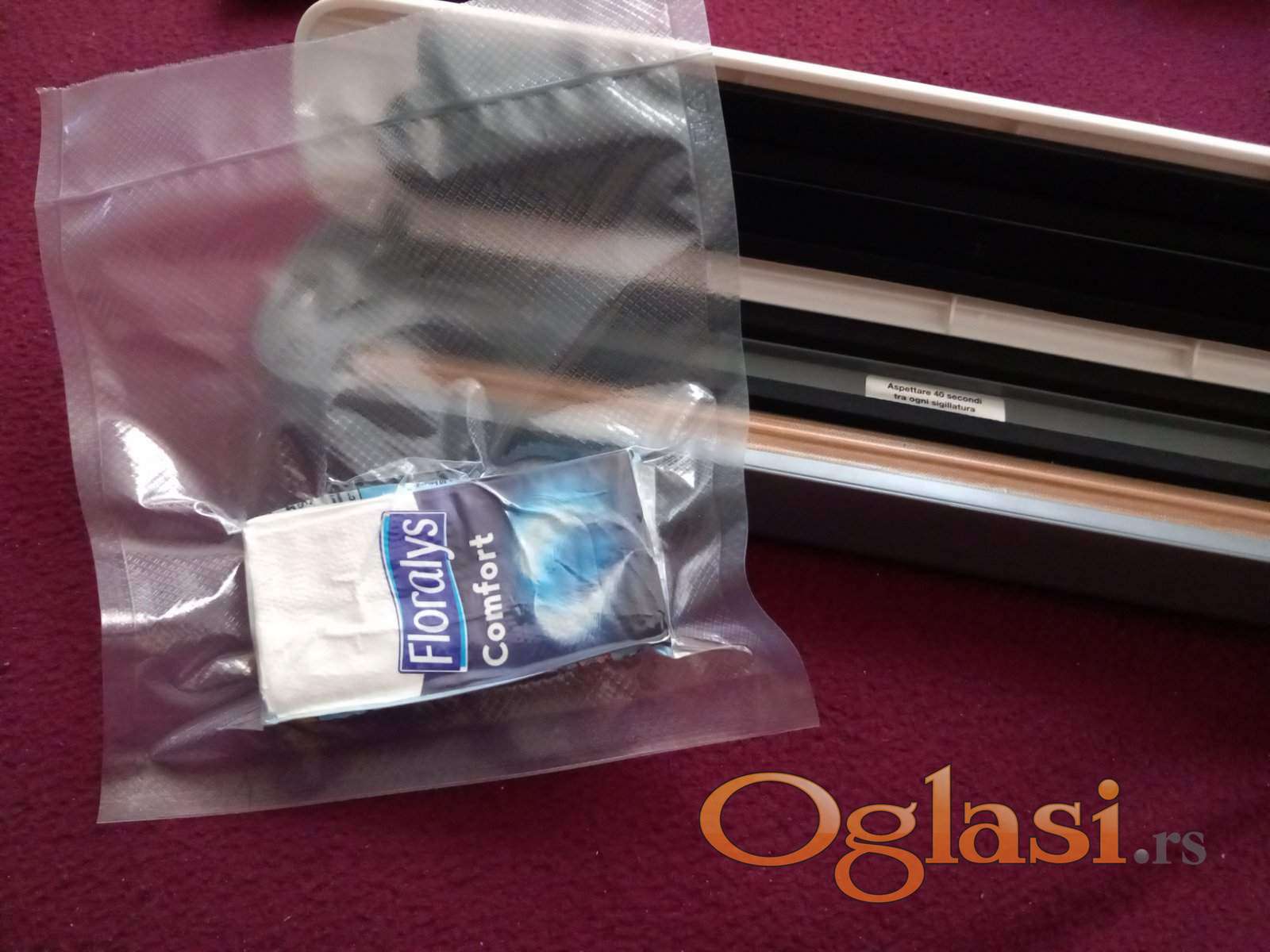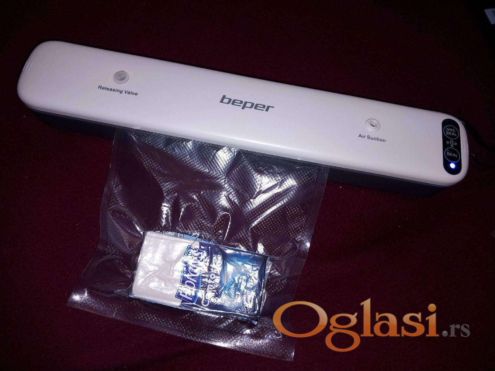 Aparat za VAKUMIRANJE KESA ,automatska izvlaci vazduh koliko je potrebno a zatim zavari kesu.Vi samo dignete poklopac na klik i gotovo...