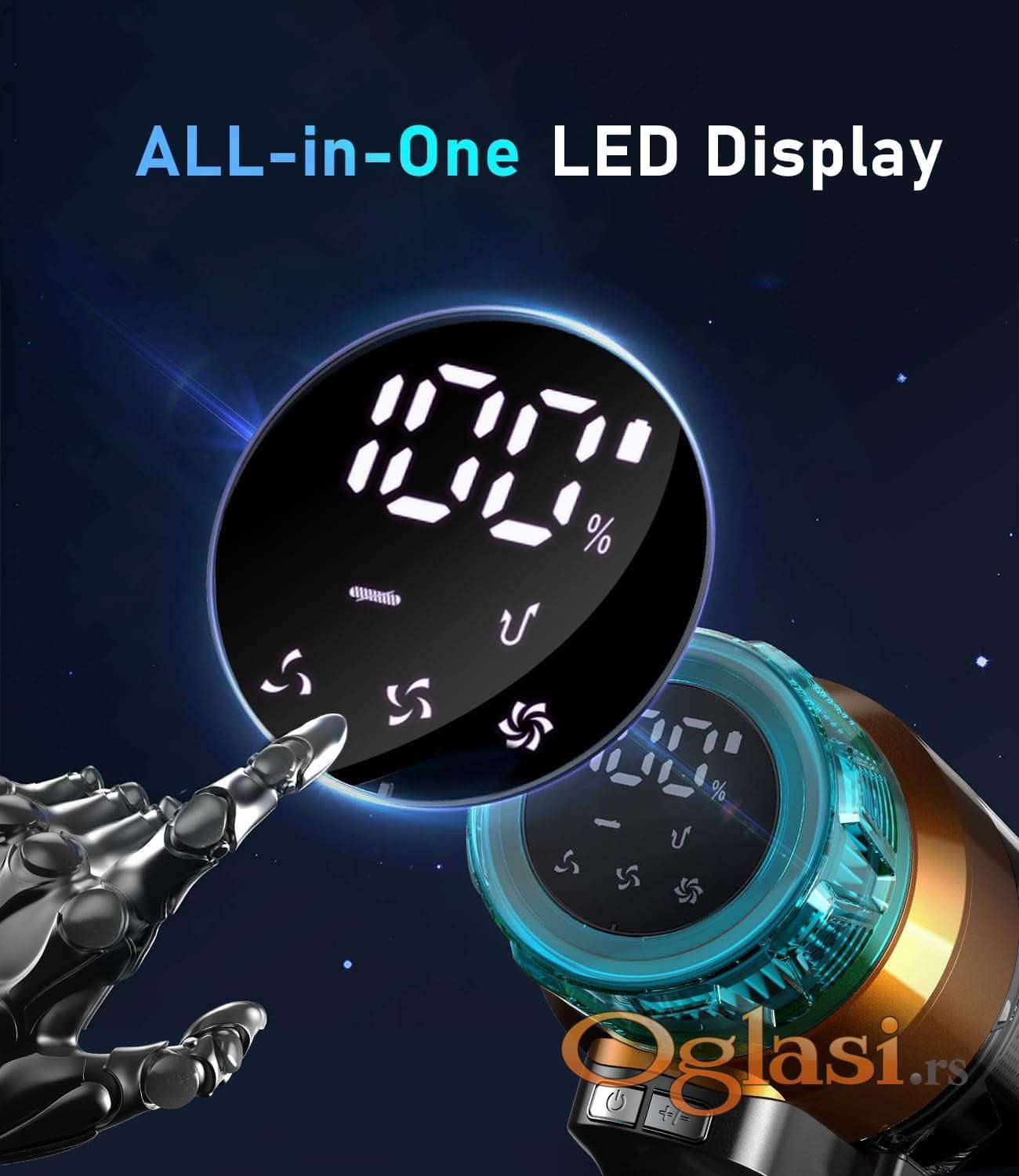 - OLED ekran u boji - veliki, pregledni OLED ekran u boji pruža potpunu kontrolu i uvid u rad uređaja. Prikazuje preostali nivo baterije, status filtera i upozorava na eventualna začepljenja.