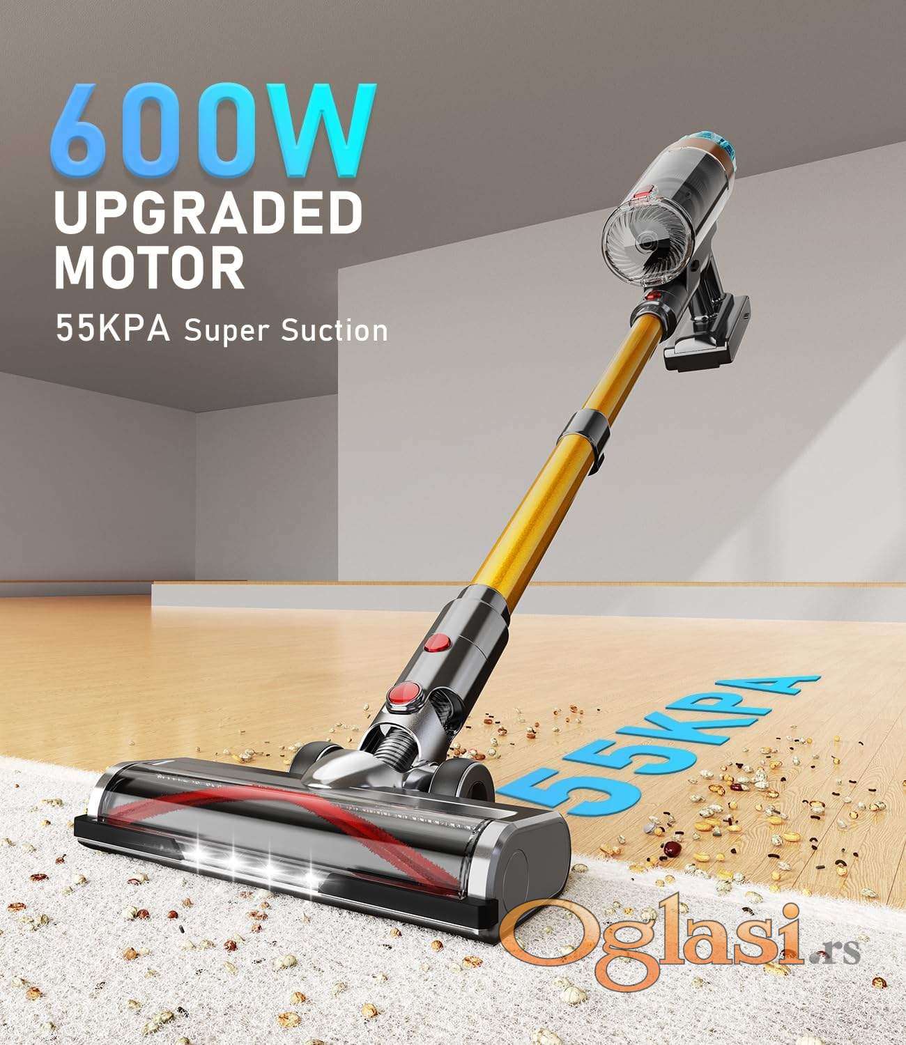 - Premium motor od 600W - Usisivač sa moćnim motorom od 600W i tri nivoa usisne snage, gde najviši nivo dostiže neverovatnih 55KPa.