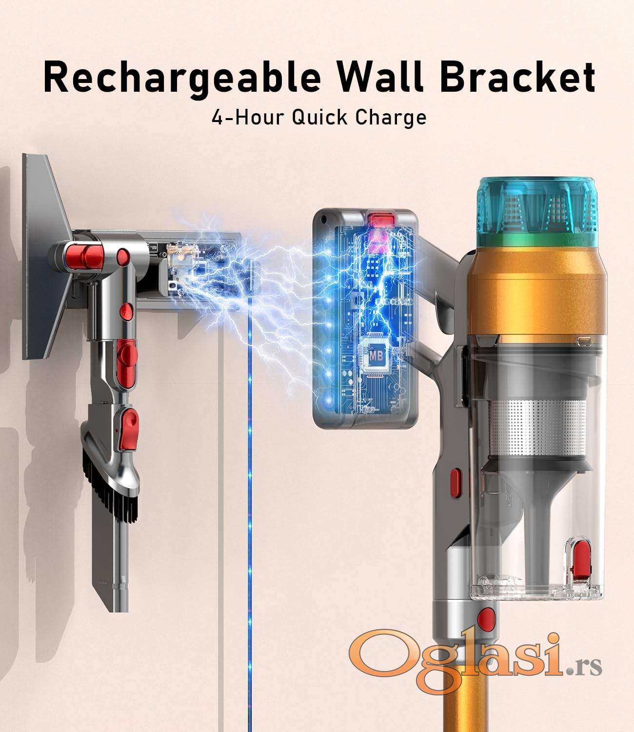 - Zidni nosač za punjenje i odlaganje - praktična zidna stanica sa funkcijom punjenja osigurava da vaš usisivač bude uvek spreman za sledeće čišćenje. Nakon upotrebe, uređaj jednostavno postavite na nosač, gde se automatski puni, a svi dodaci mogu se uredno odložiti u integrisane držače. Idealno rešenje za uštedu prostora i organizovan dom.