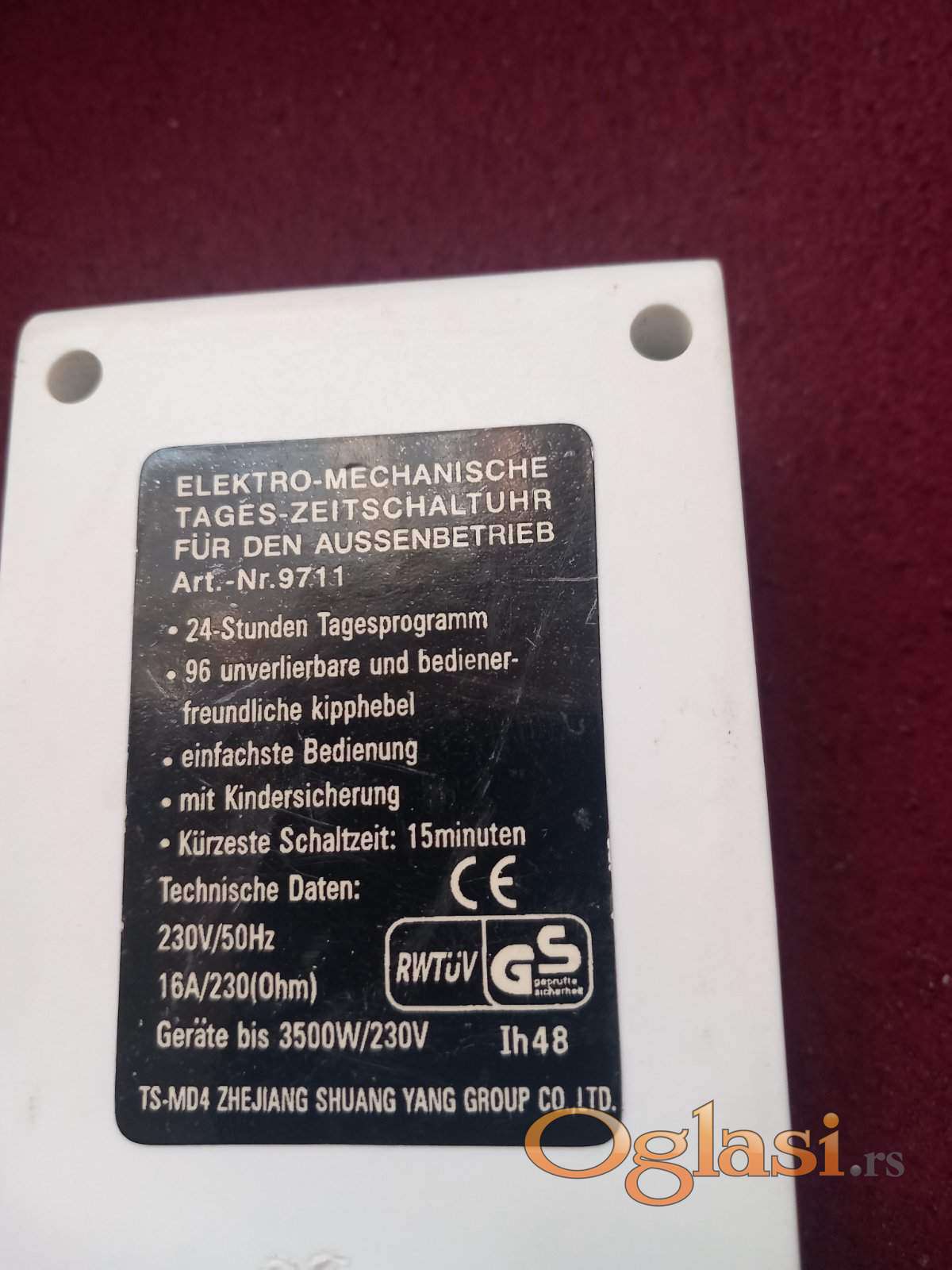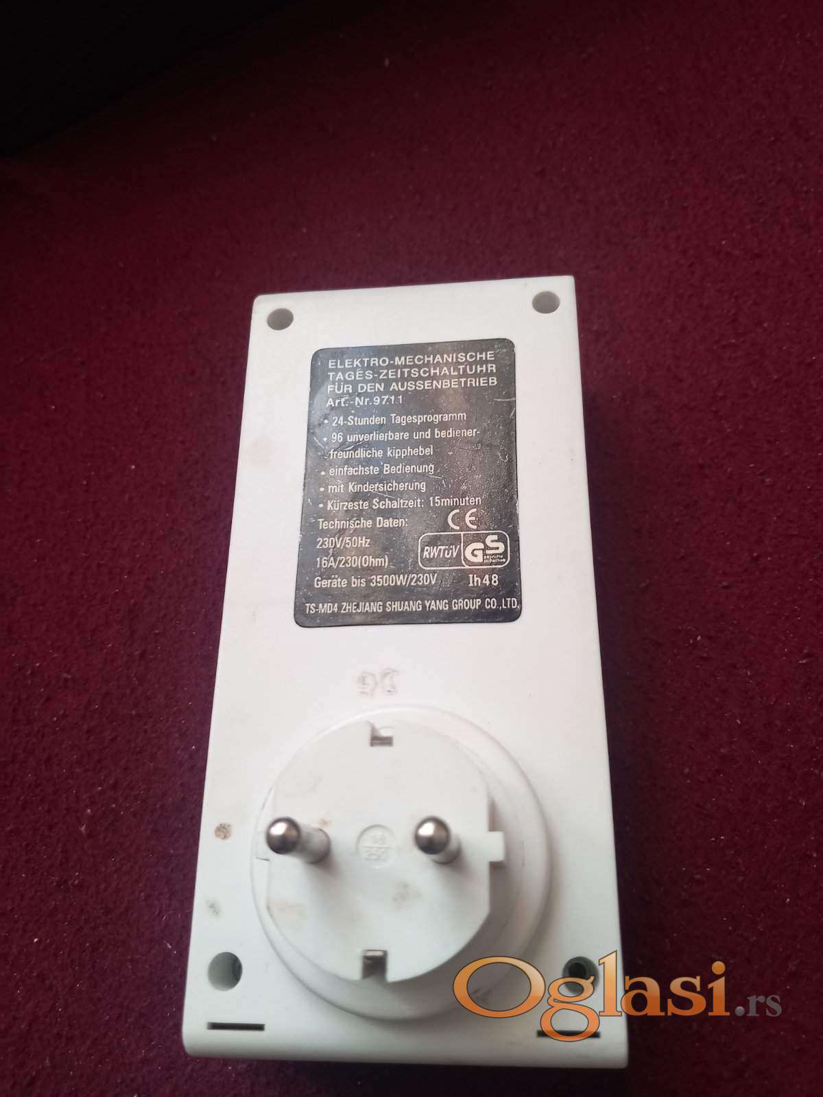 Tajmer za pustanje u rad na odlozeno raznih kucnih aparata uz programiranje ukljucenja iskljucenja...idealan za TA peci, grejalice,ves masine, sporete,klime i slicno...snage uredjaja do 3.5kw