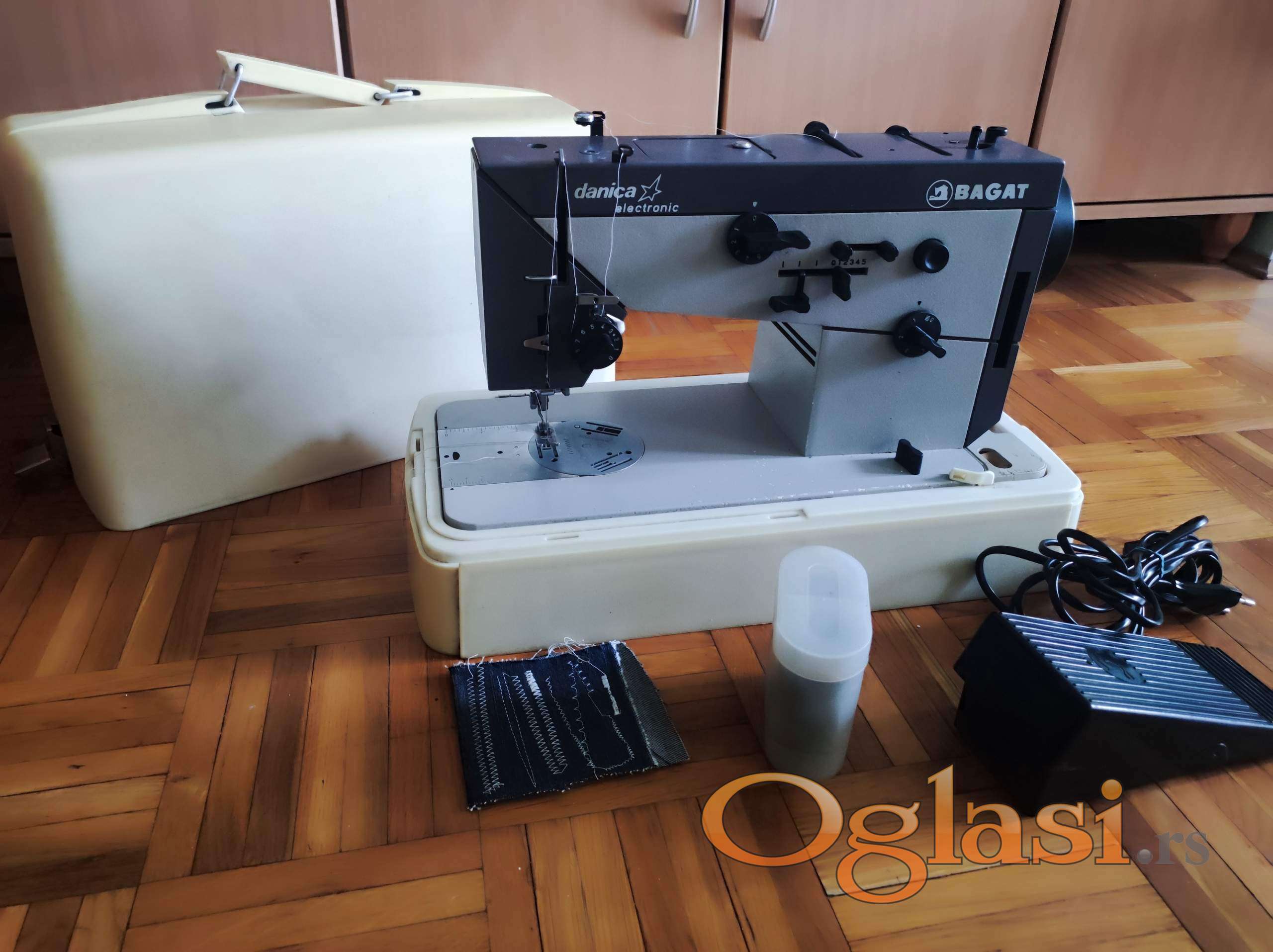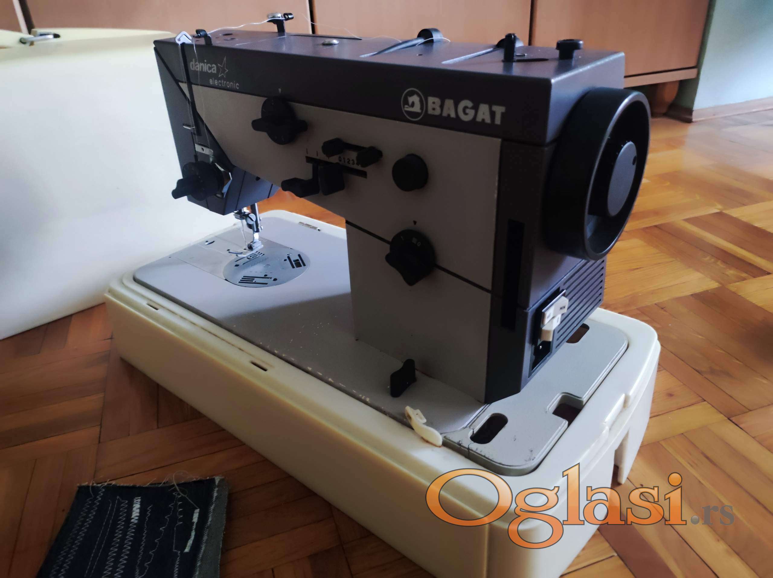 Prodajem korišćenu mašinu za šivenje marke BAGAT Danica u potpuno ispravnom stanju. Mašina može da pravi ravni i cik-cak vez (sa 14 plastičnih šablona radi još toliko vezova) čiji se bod može dodatno podešavati po dužini, a cik-cak i po širini, zatim ima mogućnosti opšivanja rupica za dugmiće, šivenja unazad, isključenja transportnih zuba, podešavanja pritiska stopice na materijal, mašinskog namotavanja konca na kalem i osvetljenja radne površine. Izgled vezova prikazan je na slici.