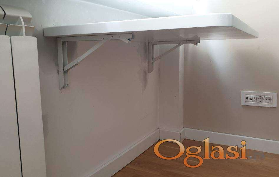 Montaza je jednostavna sa vijcima kroz odgovarajuce rupe. Tri rupe za pricvrscivanja noaca na zid i tri rupe za pricvrscivanje nosaca za plocu. Rukovanje je veoma jednostavno. Kada zelite da postavite sto u gornji polozaj dovoljno je samo da ga podignete dok "klikne" i on se sam zabravi u gornji polozaj. Kada zelite da ga spustite samo pritisnete polugice na nosacima kao na stipaljkama i spustite plocu.