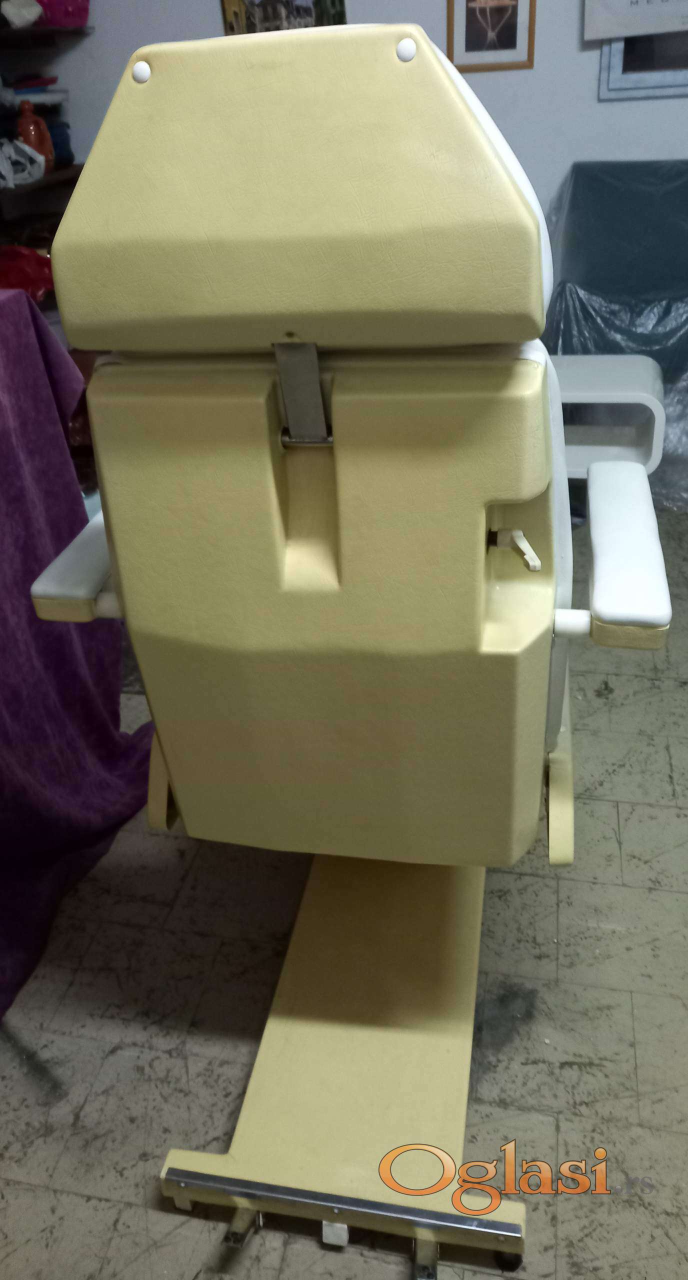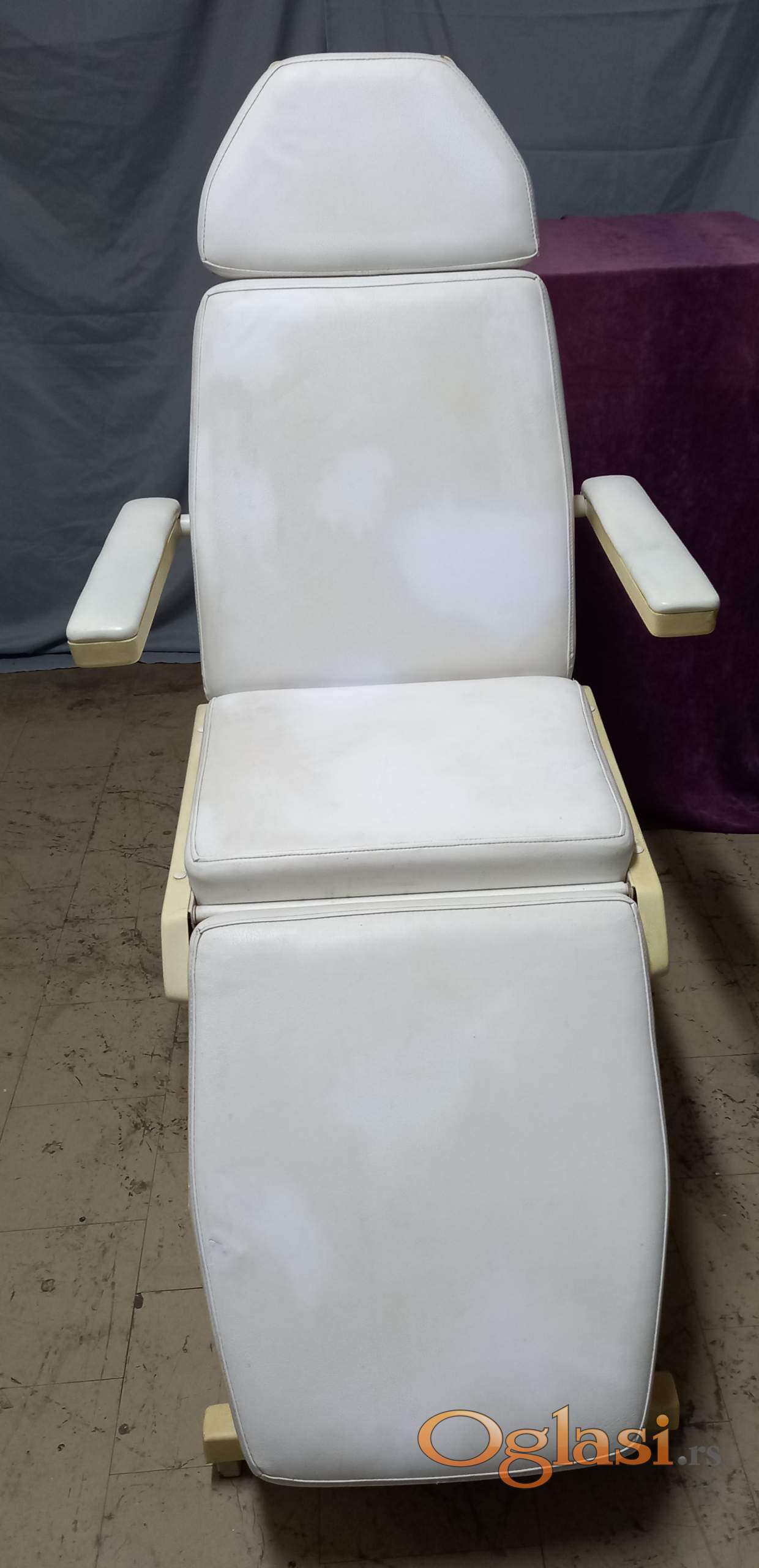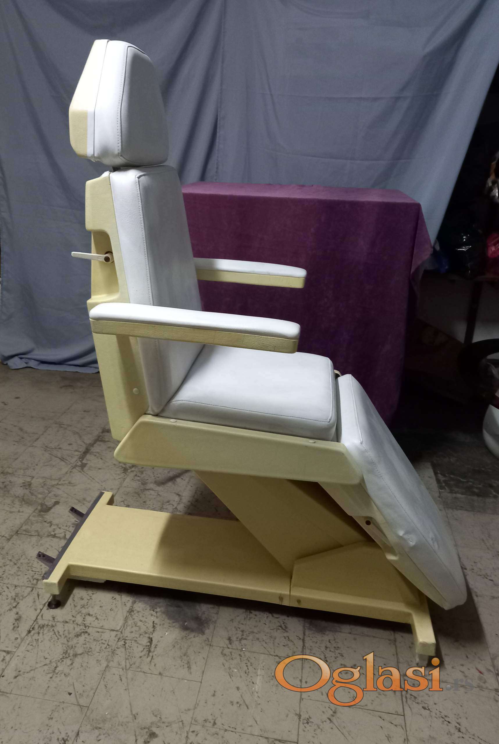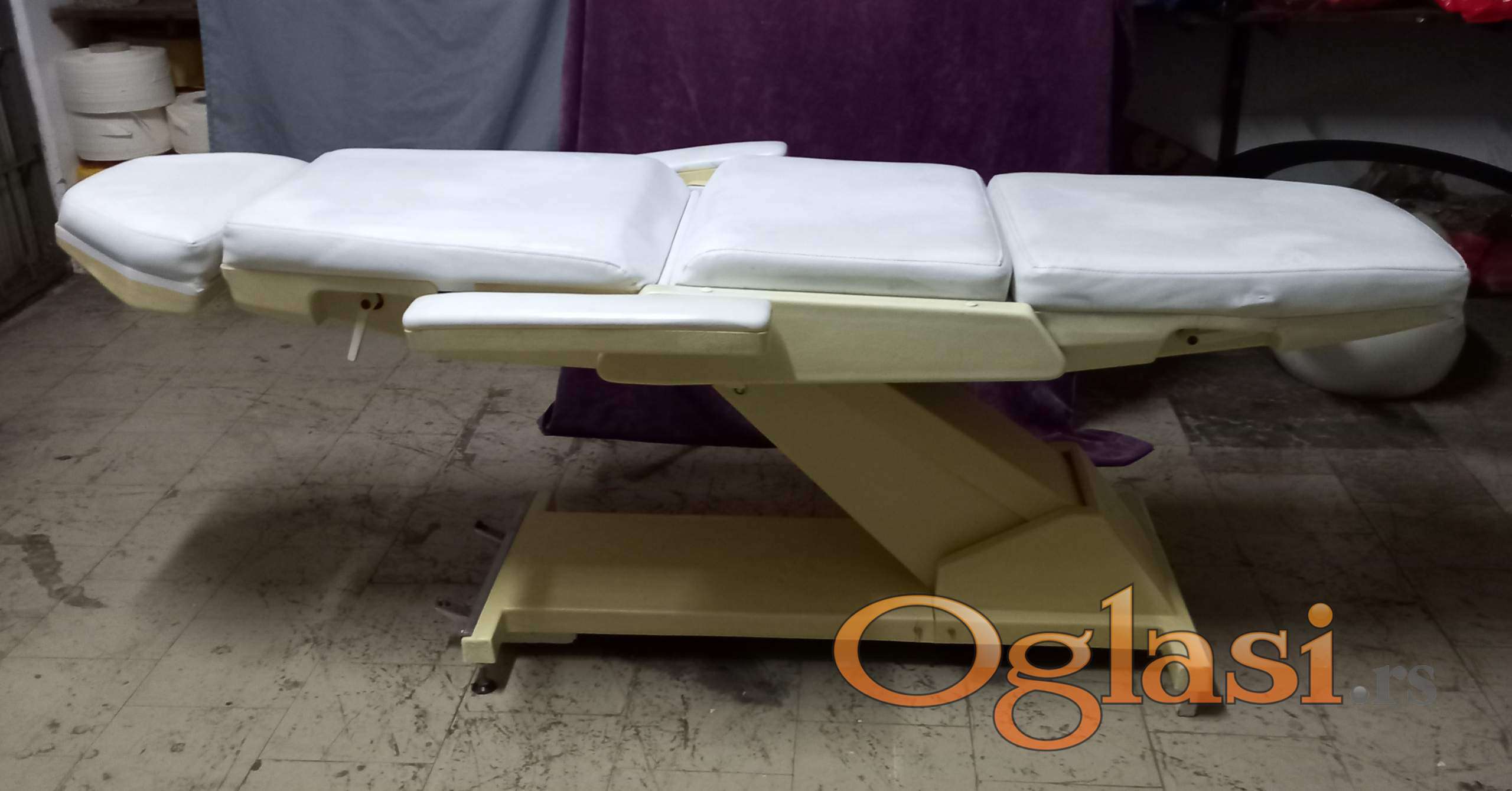 Prodajem kozmetičku stolicu, može da se podešava nagib, moze da se podesava visina, može da se obori u lezeci polozaj.