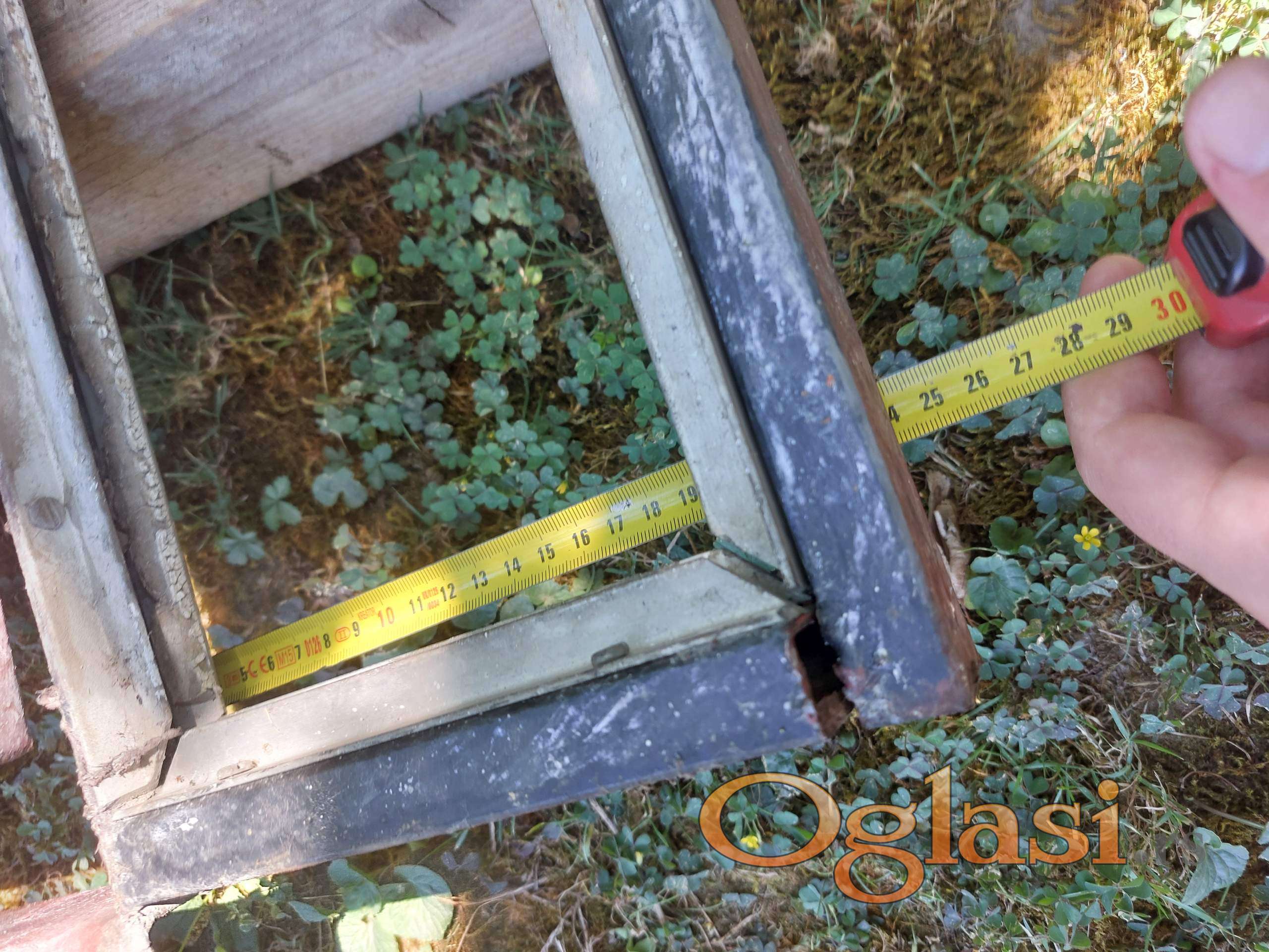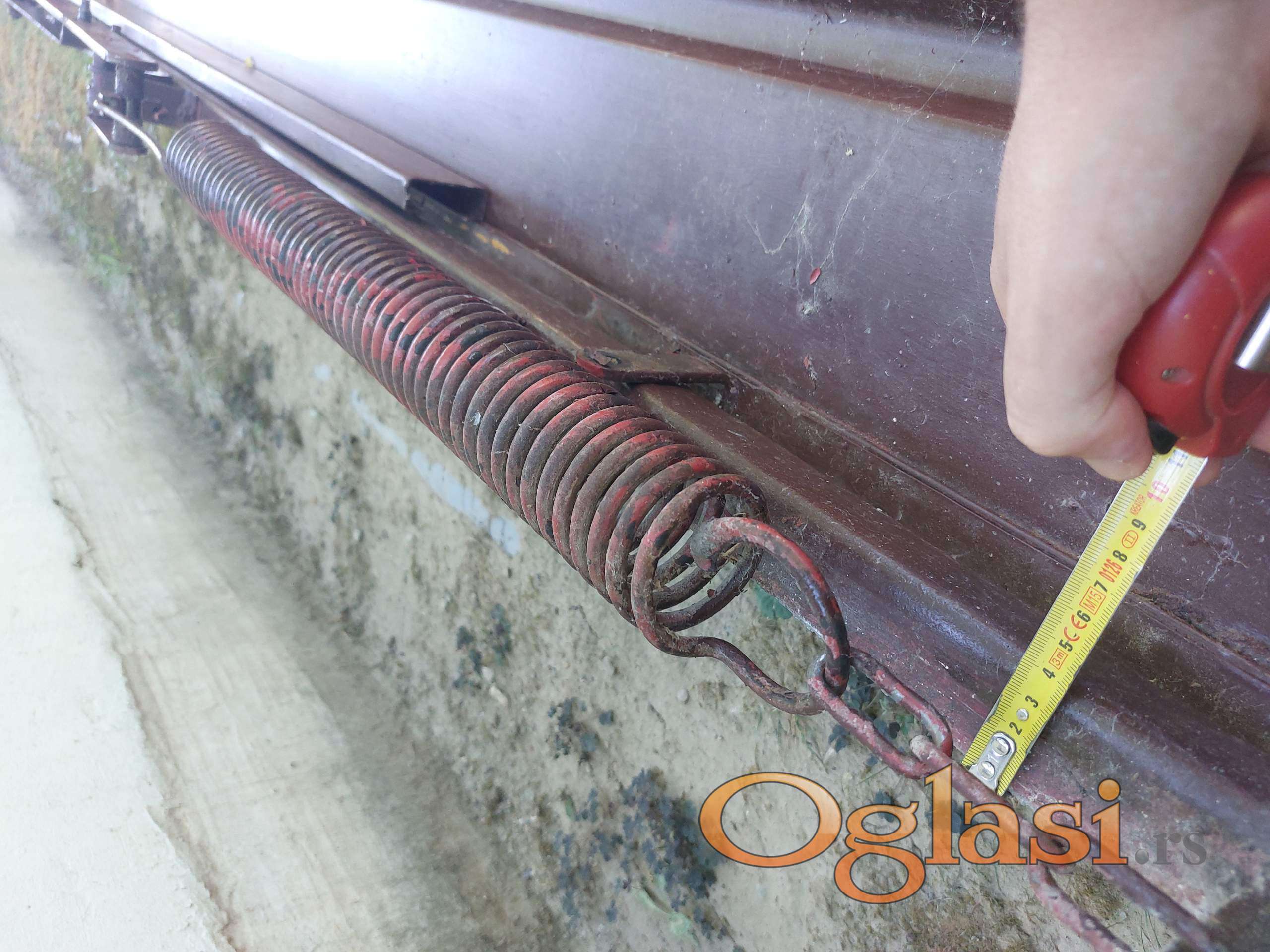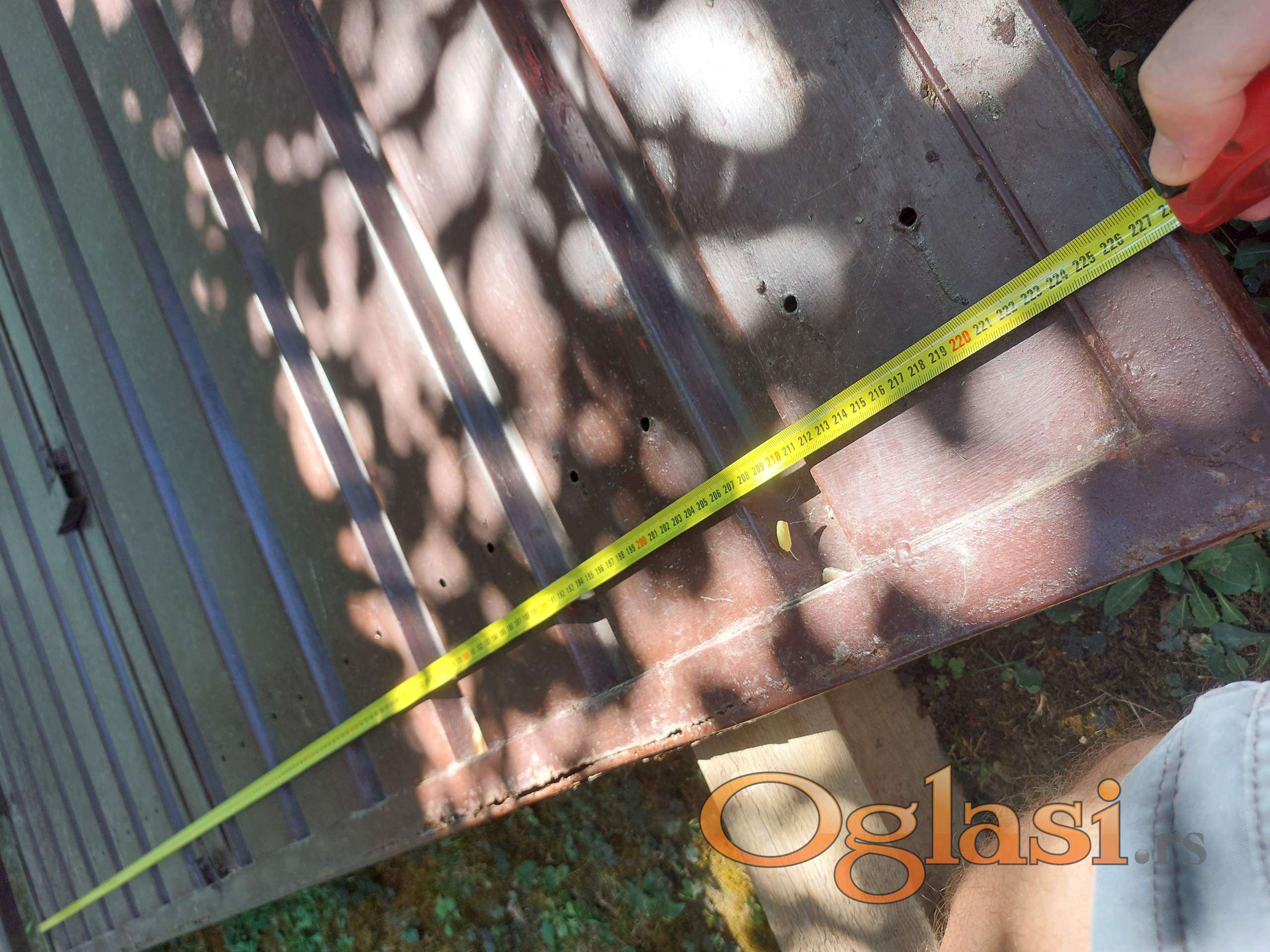 Očuvana metalna garažna vrata, širine 236cm (228 + 2*4cm štokovi) i visine 225cm (199 + 24cm stakleni deo).