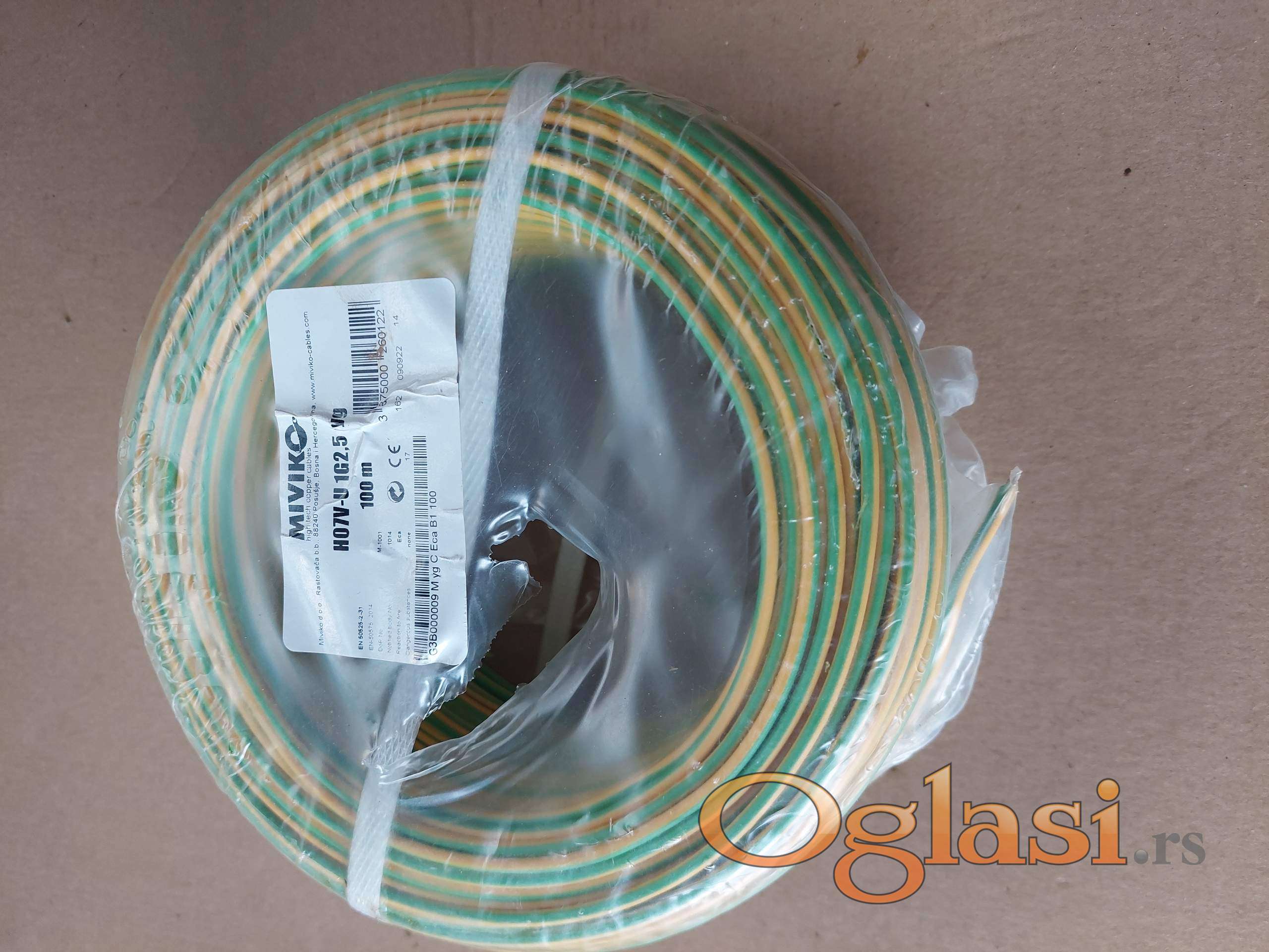 Licnasti provodnik 2,5 mm žuto zelena, cena za kotur 100m 3500 din.