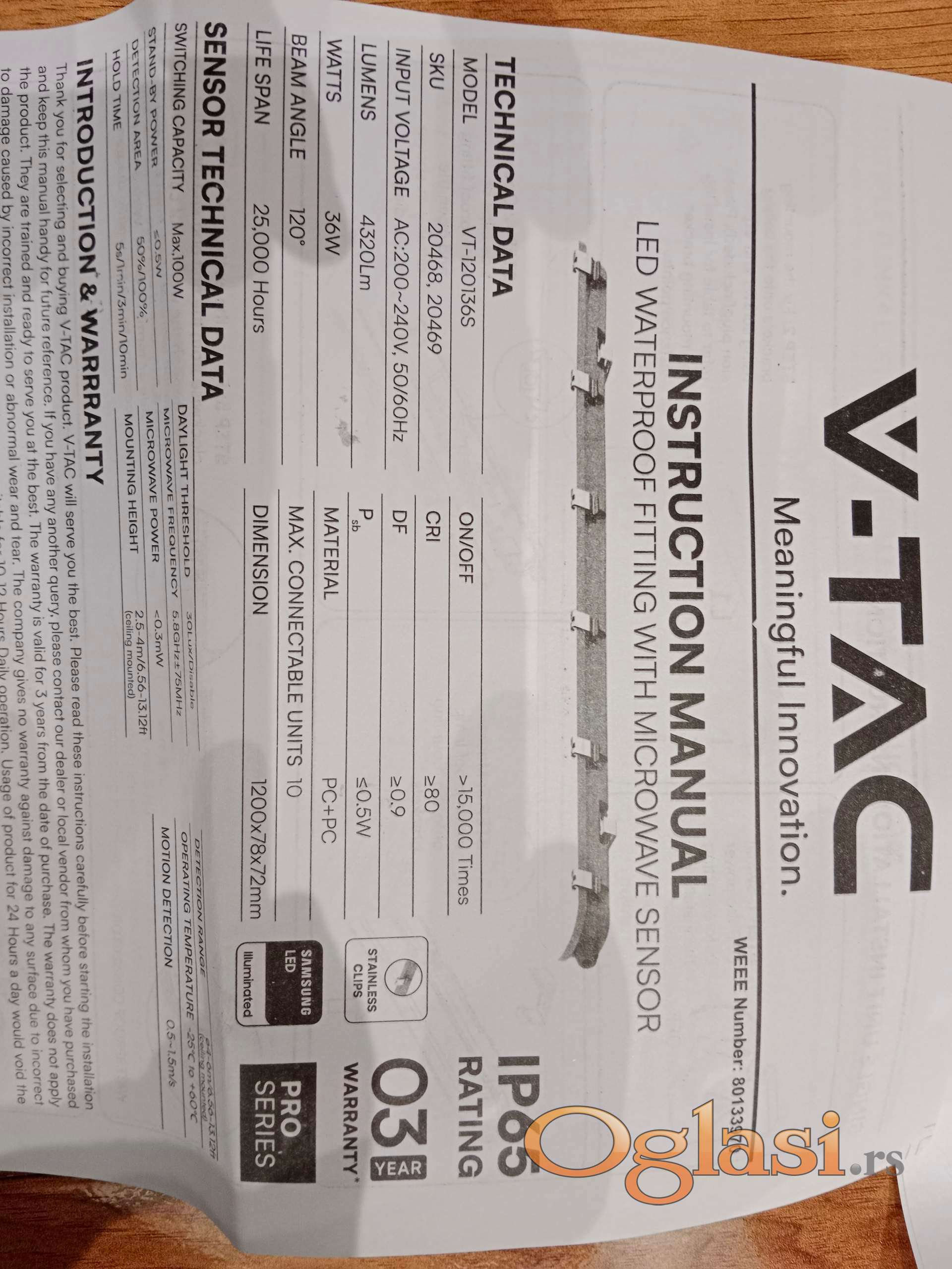 Nove LED vodootporne lampe sa senzorom pokreta V-TAC Samsung 36W 4000K i 25.000 sati radnog veka. IP65 zaštita, više modova rada . Mogu se nastavljati do 10 komada u nizu. Vrhunski kvalitet. Više komada na stanju.