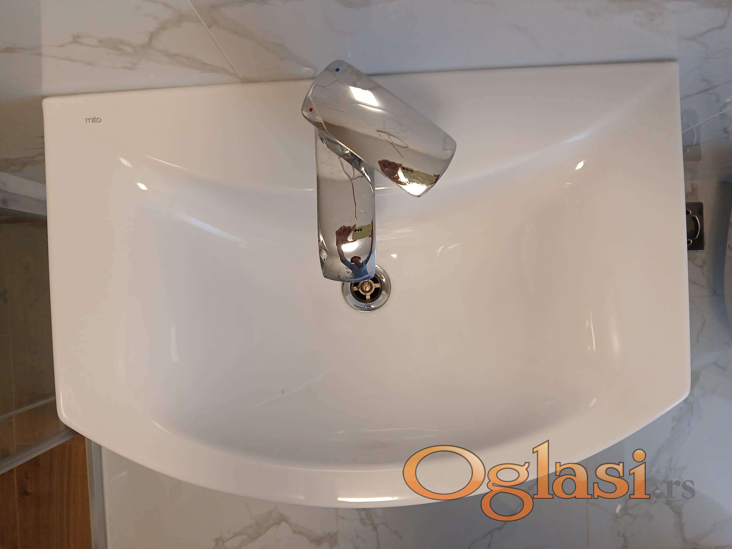 Keramički, zidni lavabo "Mito" (bez slavine i sifona) korišćen samo par meseci. Širina 65cm. Dubina 43 cm.