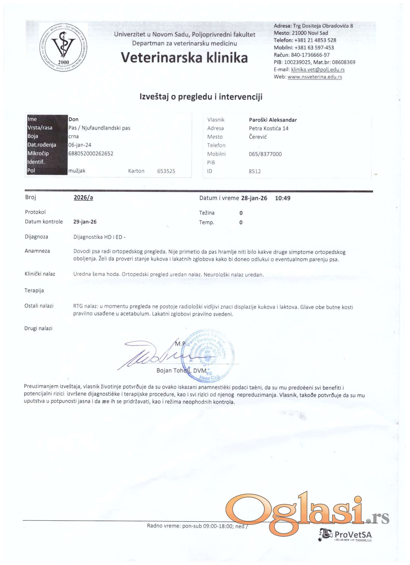 Njufandlender, muzjak, star 2 godine, za parenje, uverenje za kukove i laktove, besplatno