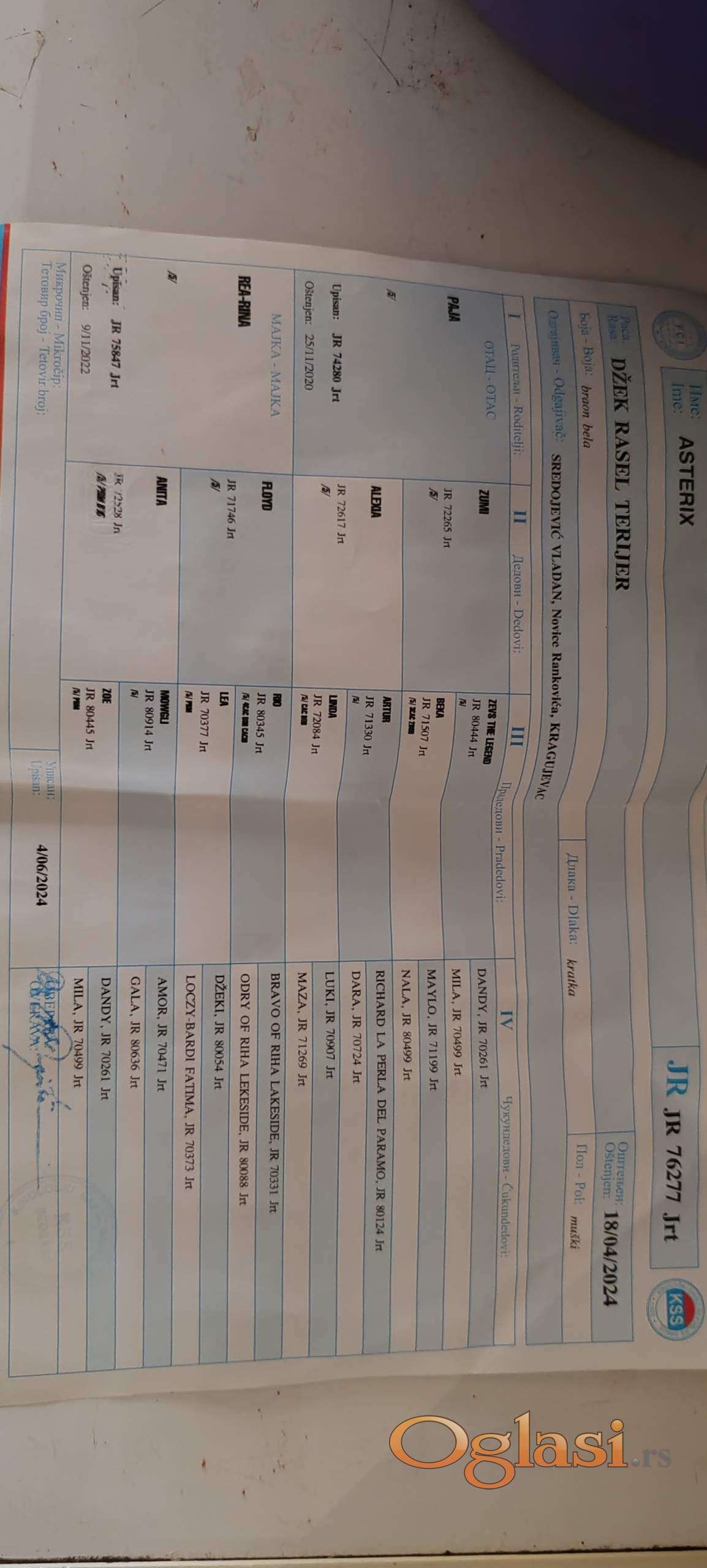 Dzek Rasel spreman za parenje uredno vakcinisan cipovan zdrav od fenomenalnih roditelja karakterno umiljat obozava ljude decu druge zivotinje nije agresivan ni malo