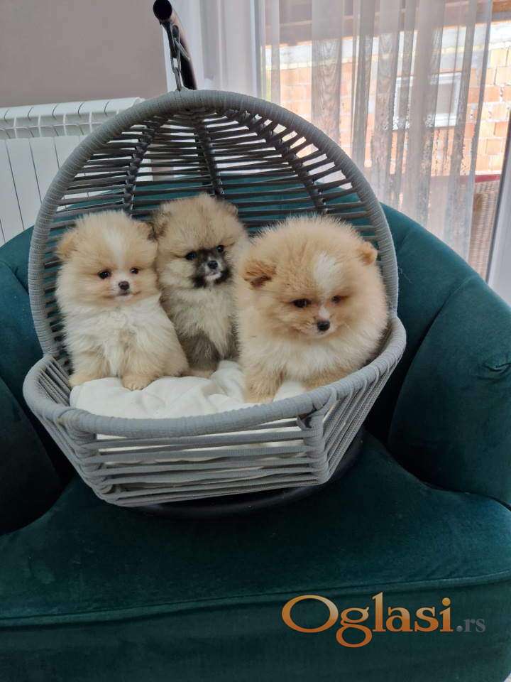 Pomeranci preslatki, malene bebice, spremne su za prezimanje. Uredno vakcinisani i ocisceni od parazita. Odrastaju uz mnogo ljubavi, i svom mogucim paznjom, jako su pametni, razigrani, veseli. Uz njih dobijate kompletnu dokumentaciju, kao i osnovne stvarcice za sam dolazak u novi dom. Cinijice za hranu i vodu, igrackica, podmetac za obavljanje nuzde, hrana za prelazni period.