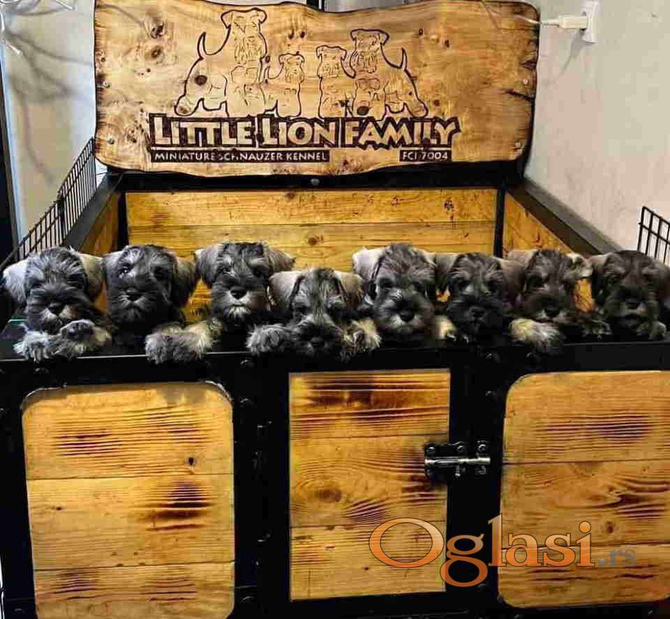 Odgajivacnica PATULJASTIH SNAUCERA Belih i Biber so “ Little Lion family” FCI 7004 osvajac 2 mesta na kao odgajivacka grupa na Euro dog Show 2024, World Dog Show 2023 osvajac mnogih nagrada na Internacionalnim izložbama po Evropi, sa psima vrhunskih krvnih linija iz Brazila, Rusije Spanije, Srbije. Svi psi su internacionalni Šampioni