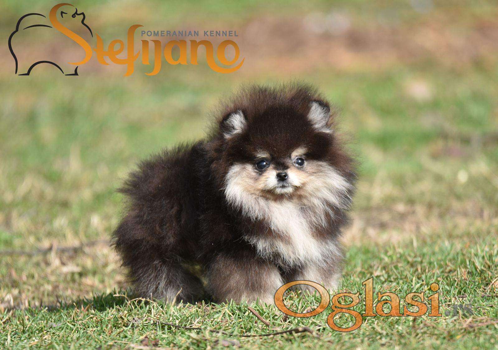 Pomeranac Boo.Vrhunski stenci pomeranca,minijaturnog patuljastog rasta, kratkih njuskica, medvedastog izgleda, dostupni u više boja ,bela,oranž,black and tan,krem.Moguća izrada putne i kinoloske dokumentacije.