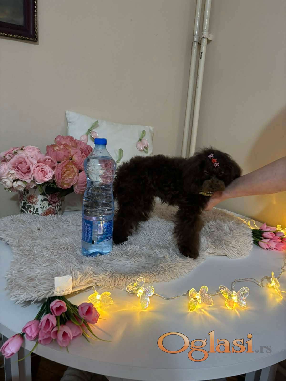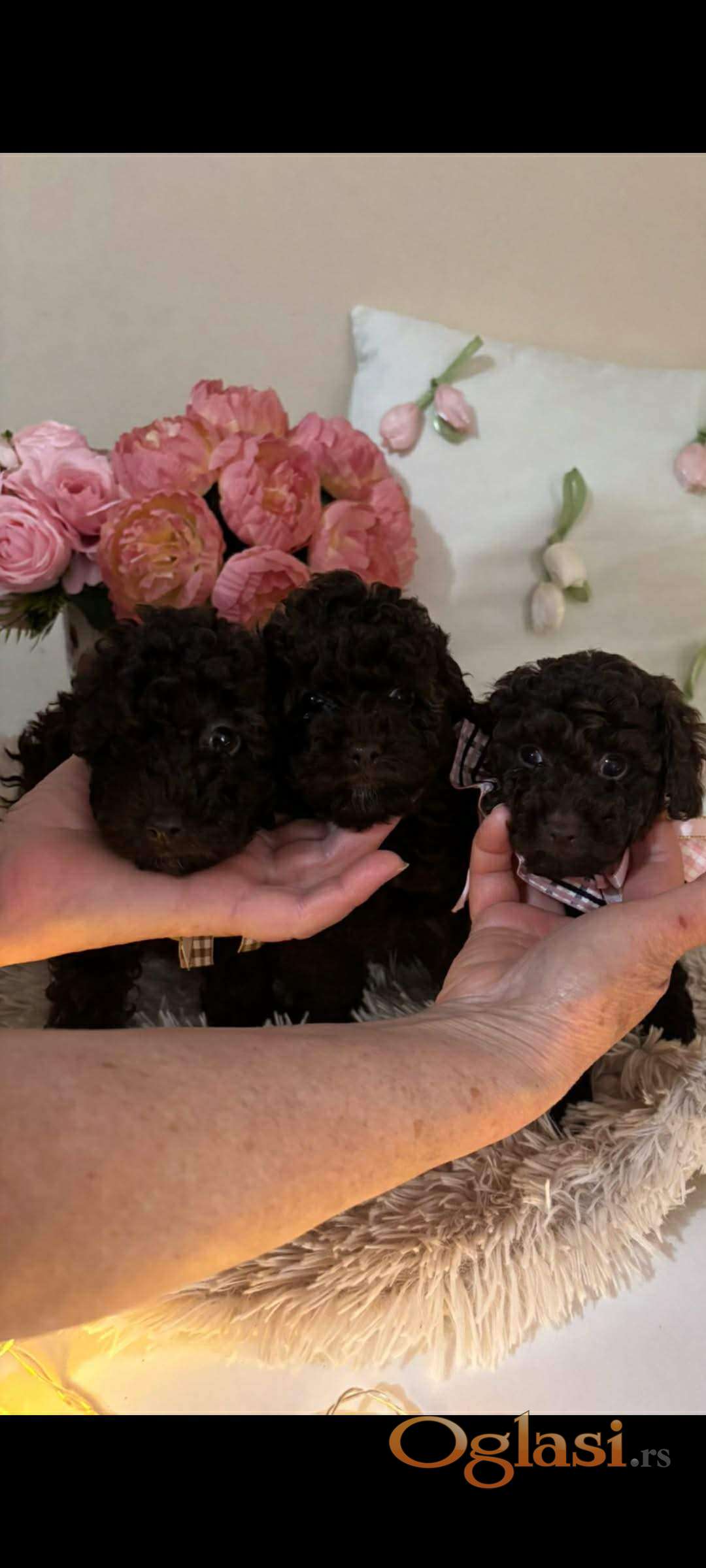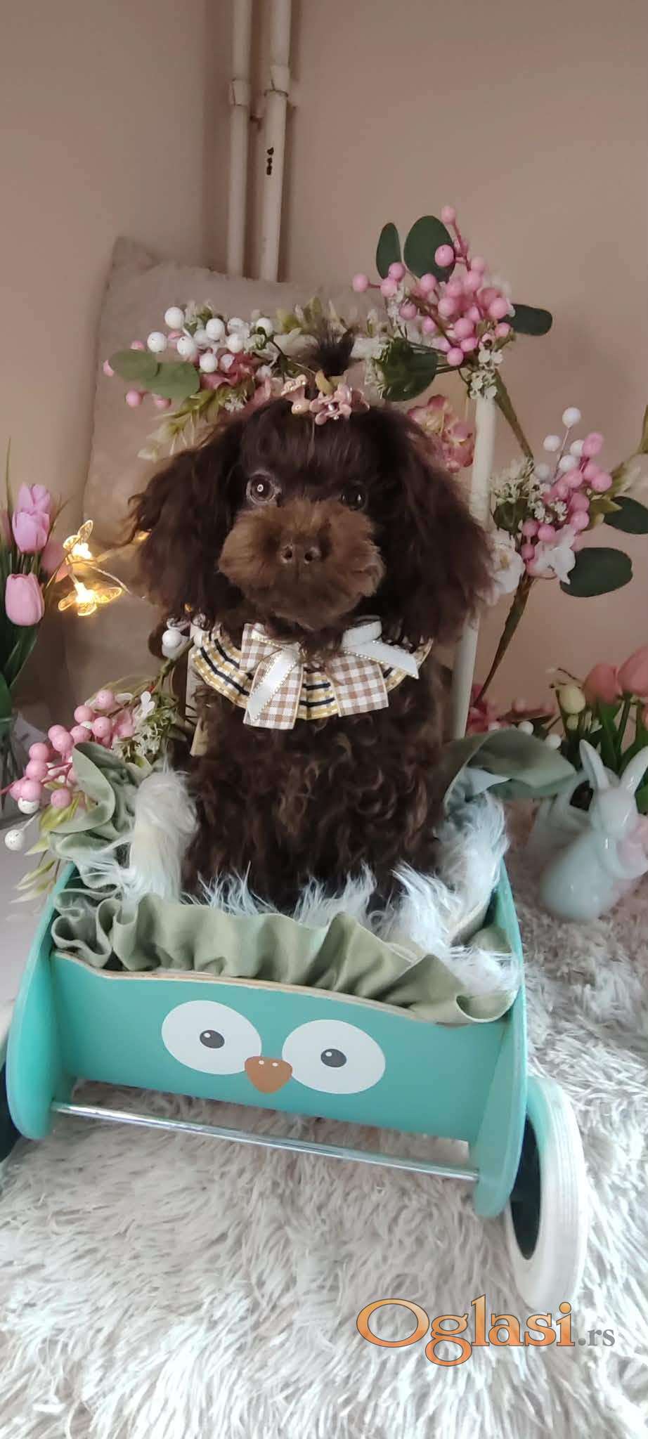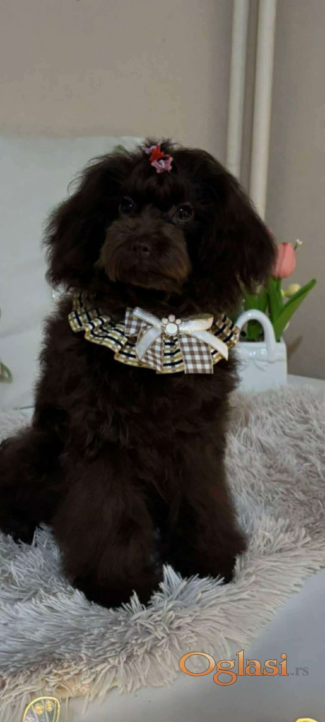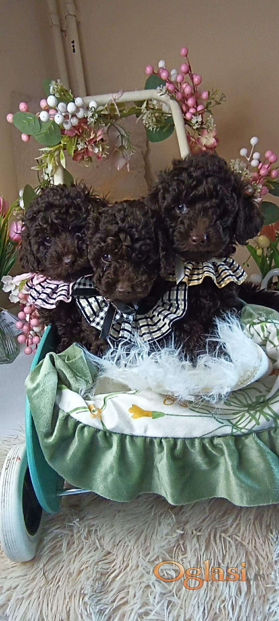 Pudla, braon ženka, od braon roditelja, starosti 6,5 meseci, završila rast, vakcinisana sa tri vakcine, naučena na decu i pse, otac toj  šampionskog porekla, majka toj braon boje. Prodajem i tri ženke starosti 2,5 meseca braon boje, biće spremne za preuzimanje krajem marta, sa dve vakcine. Štenci se gaje u kući, hrane se vrhunskom hranom, naviknuti na decu i pse.