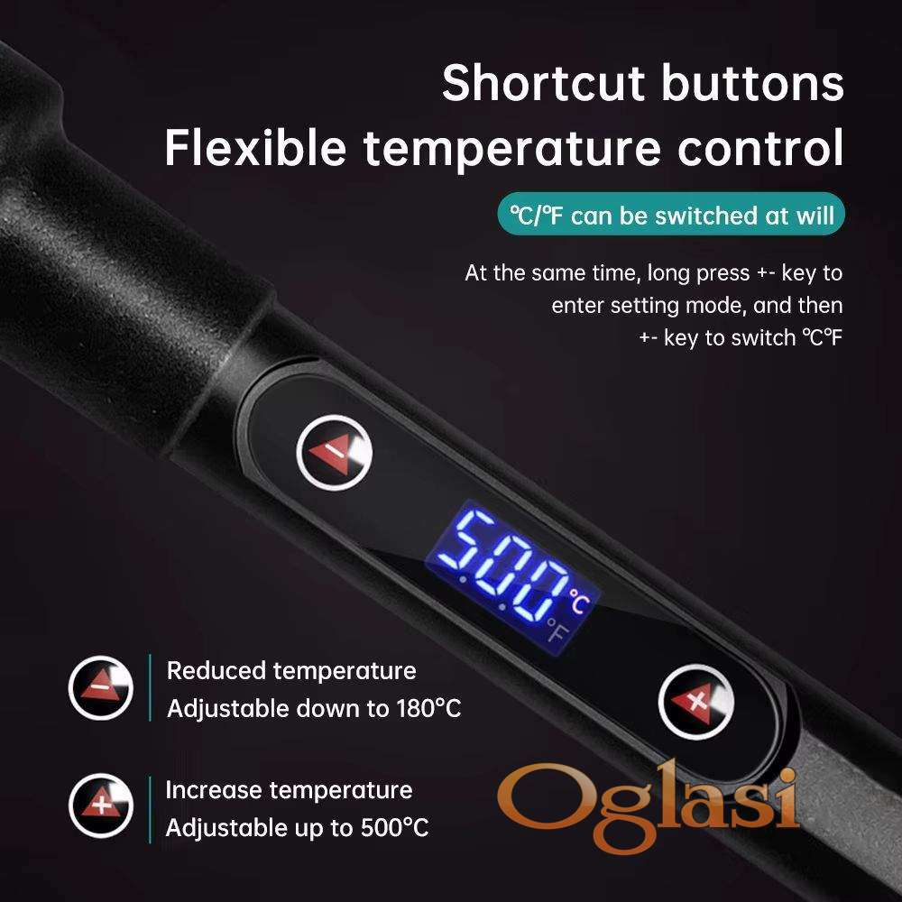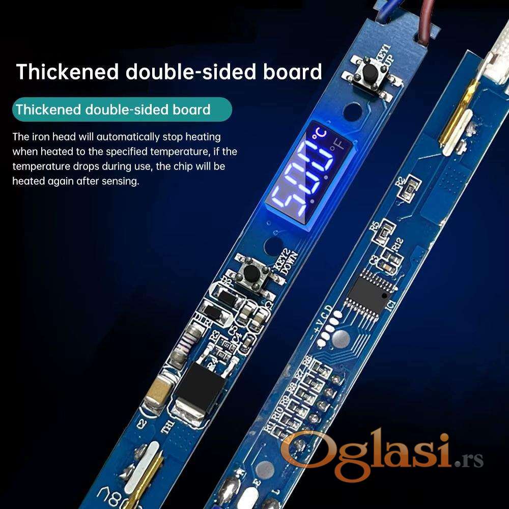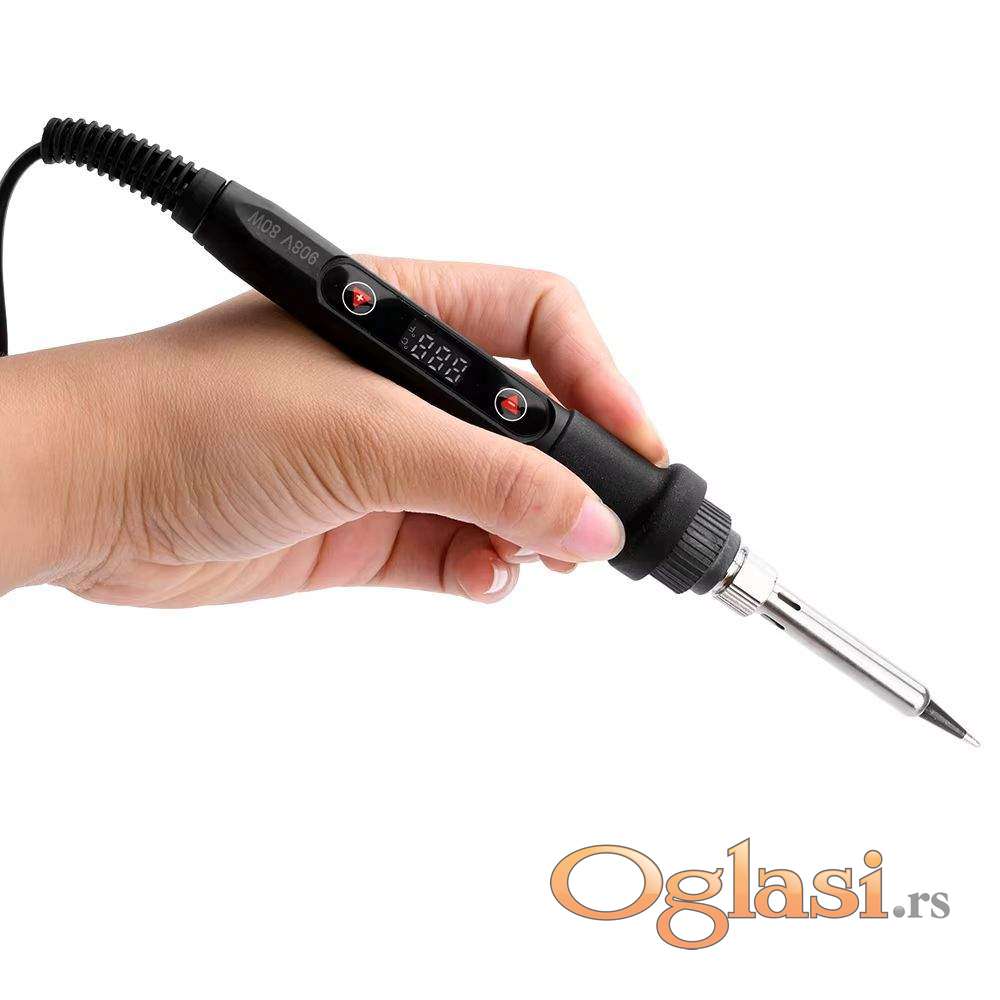 Nova profesionalna lemilica 80W sa LCD displejem na kome se vidi temperatura. Jednostavno podešavanje temperature od 180C do 500C preko tastera. Savremena elektronika održava zadatu temperaturu stabilnom, precizna kontrola temperature (variranje ispod 5C). Brzo dostizanje temperature.