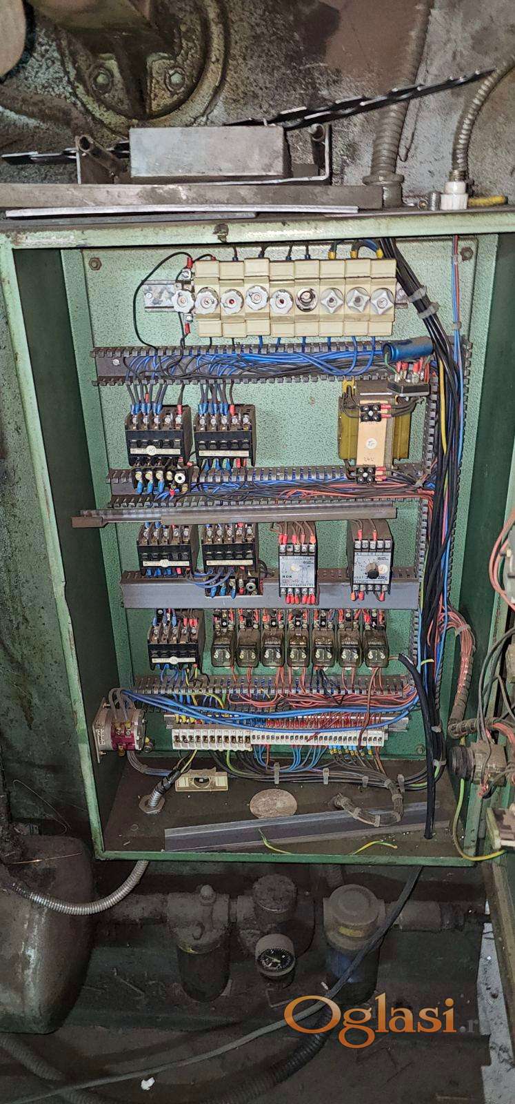 U pitanju je kombinovana masina makaze+apkant presa, pouzadane u radu, centralno podnazivanje, mehanični graničnici, jednostavan elektro orman, dvoručne komande.