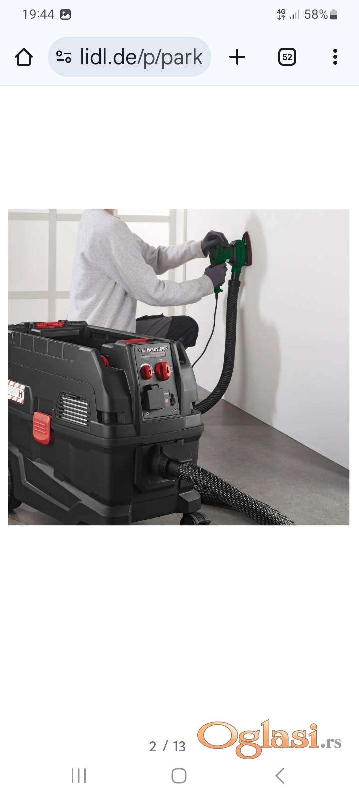 Iznajmljivanje Parkside usisivača 1300W za žirfu za šmirglanje zidova.