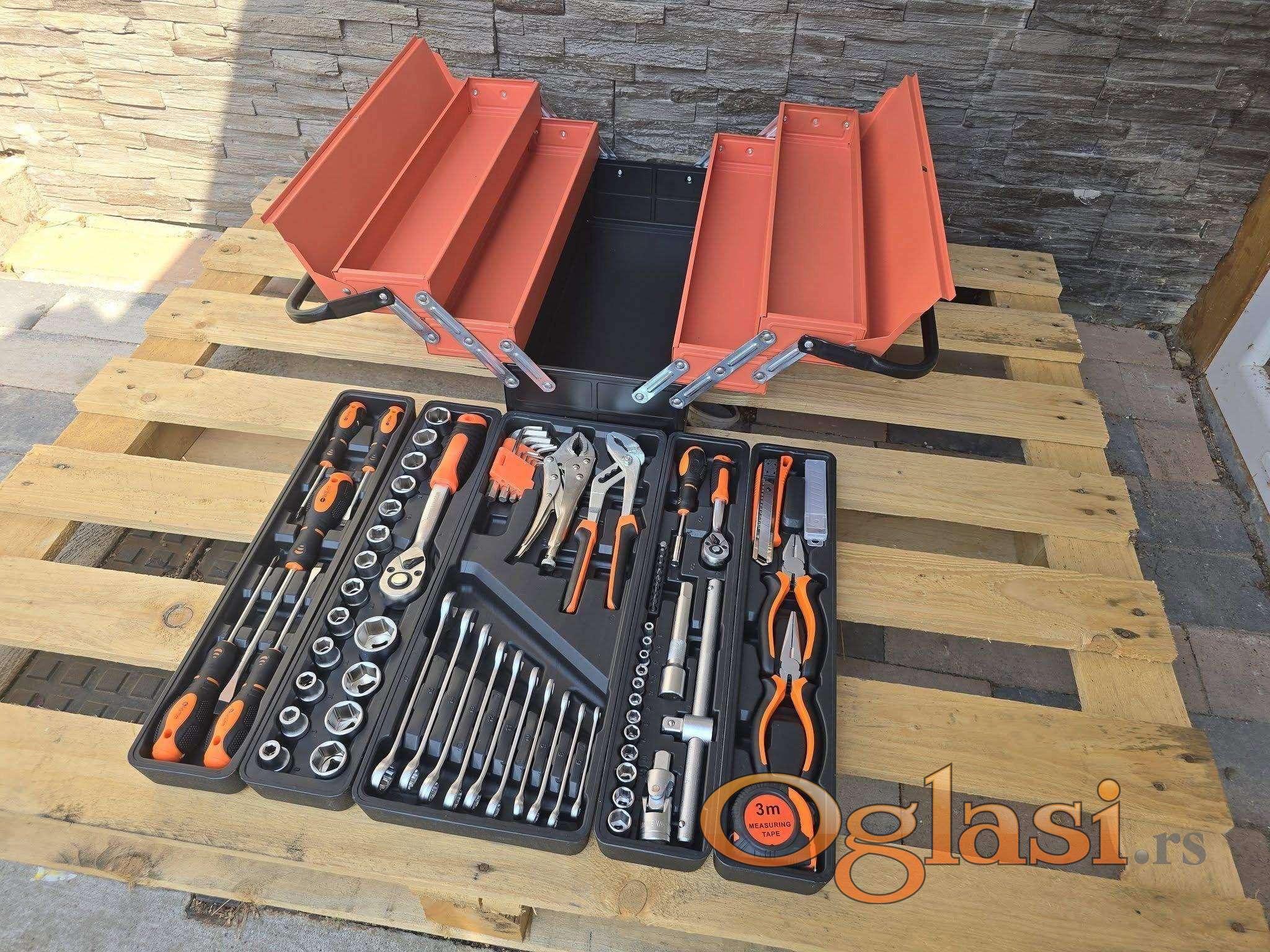Set sadrži gedore, ključeve, inbuse ,klešta, štafcigere.