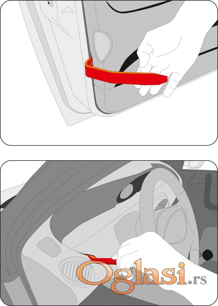 Set sadrži pet elemenata koji omogućavaju brzo demontažu tapacirunga iz svake unutrašnjosti automobila.