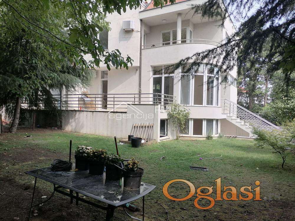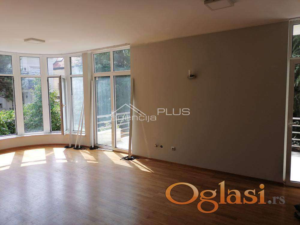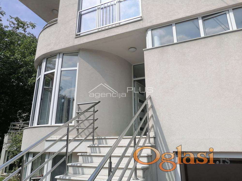 Funkcionalna kuća u blizini Američke ambasade. U prizemlju se nalazi garaža i stan sa zasebnim ulazom, namenjen gostima ili kućnom osoblju. Na prvom spratu je organizovan prostor za dnevni boravak - dnevna soba sa kaminom, kuhinja, kupatilo i terasa. Na drugom spratu su dve spavaće sobe koje imaju zajedničku terasu i kupatilo sa jakuzzi kadom. U potkrovlju su dve spavaće sobe, od kojih jedna ima i galeriju, terasa, kupatilo i mali dnevni boravak. Kuća se izdaje bez nameštaja ali postoji mogućnost opremanja nameštajem. Grejanje je etažno, na struju. Kuća ima protivpožarnu i protivprovalnu zaštitu sa alarmom. Naročito je pogodna za smeštaj osoblja ambasada, koji su dugi niz godina i bili zakupci ove kuće. Useljiva je početkom septembra 2025. Zakupac plaća agencijsku proviziju jednokratno, u visini jedne mesečne zakupnine.