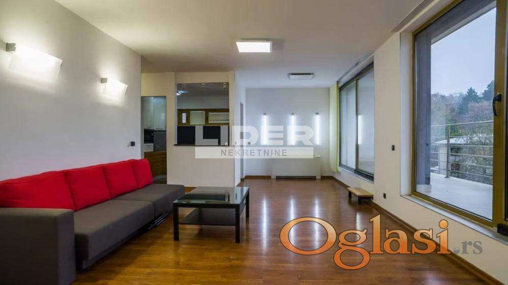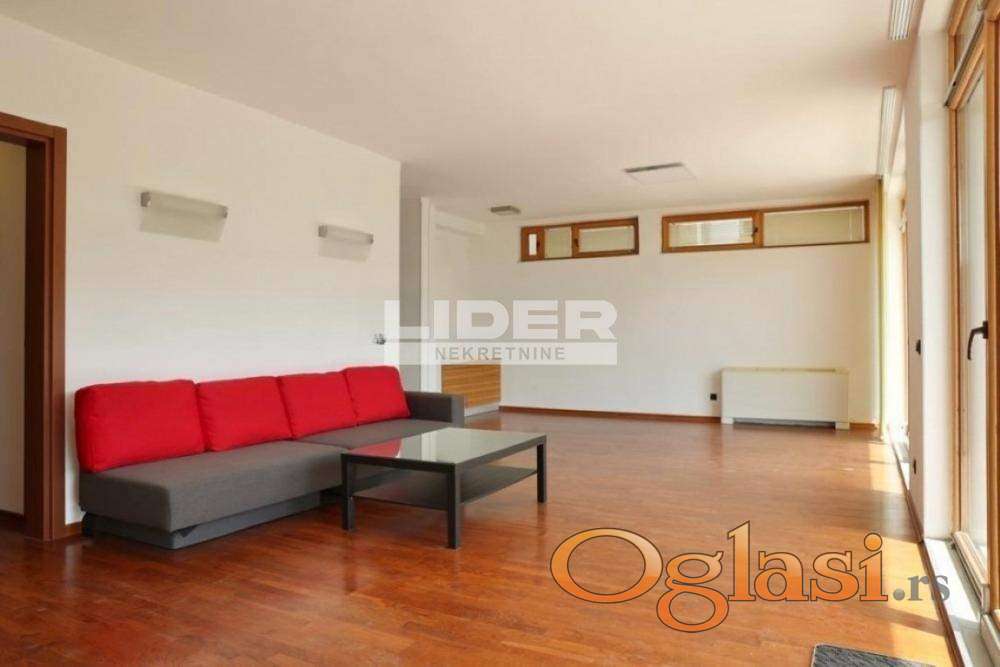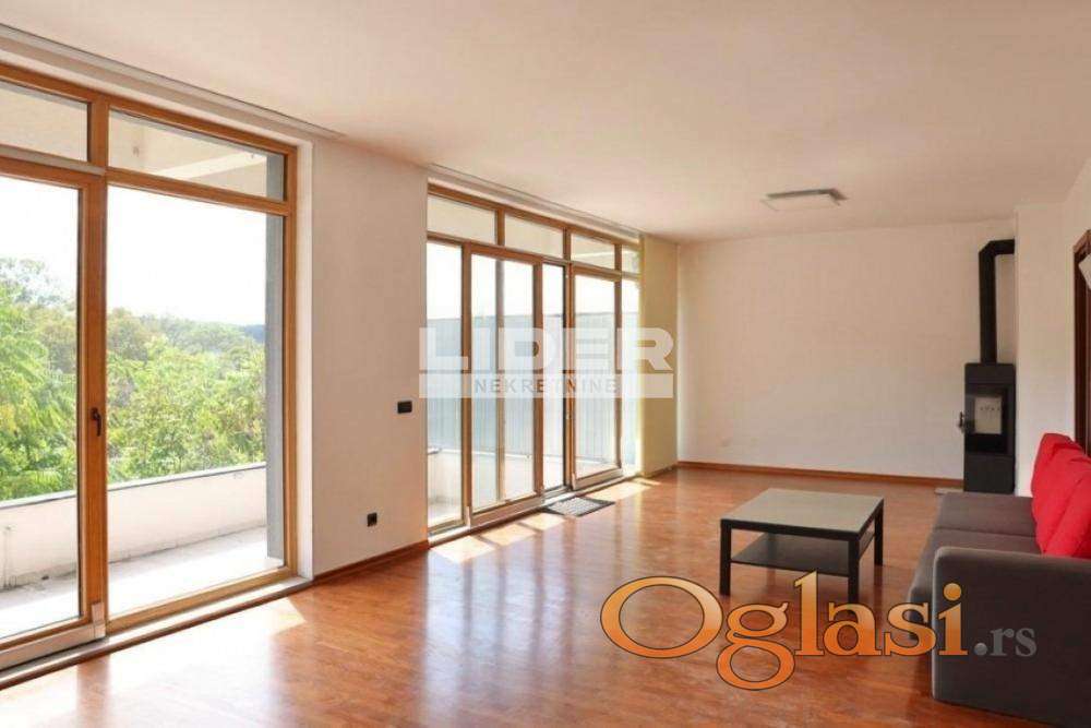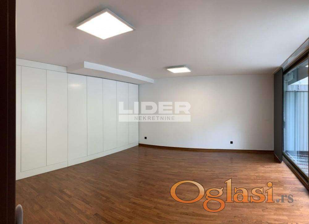Izdaje se moderna vila na Dedinju, odlično pozicionirana, pogodna za stambeni i poslovni prostor sa dobrim pristupom frekventnim delovima grada. Vila je ukupne površine od 400m², podeljena na tri nivoa, ima dva zasebna ulaza. Sastoji se od dve dnevne sobe sa modernim kaminskim pećima, dve kuhinje, sedam soba, pet kupatila (Hansgrohe, Villeroy & Boch), saune, ugradnih plakara, četiri terase, dvorišta i parkinga sa čak deset parking mesta. Kuća ima savršenu izloženost dnevnom svetlu kroz velika staklene površine tako da je ispunjena prirodnom svetlošću tokom celog dana. Sistem grejanja je baziran na energetski efikasnim toplotnim pumpama, kuća ima podno grejanje (hrastov parket) i fan coil (ventilator konvektor) uređaje. Opremljena je sa sigurnosnim kamerama, 24/7 video snimanjem (moguć pristup preko interneta), dvoja sigurnosna vrata, dva videofona i metalnom sigurnosnom ogradom sa kapijom. Kuća je opremljena SMART LED rasvetom (kontrola osvetljenje daljinskim upravljačem ili aplikacijom) i instaliranim kablovima za računarske mreže. Poželjno dugotrajno rentiranje.