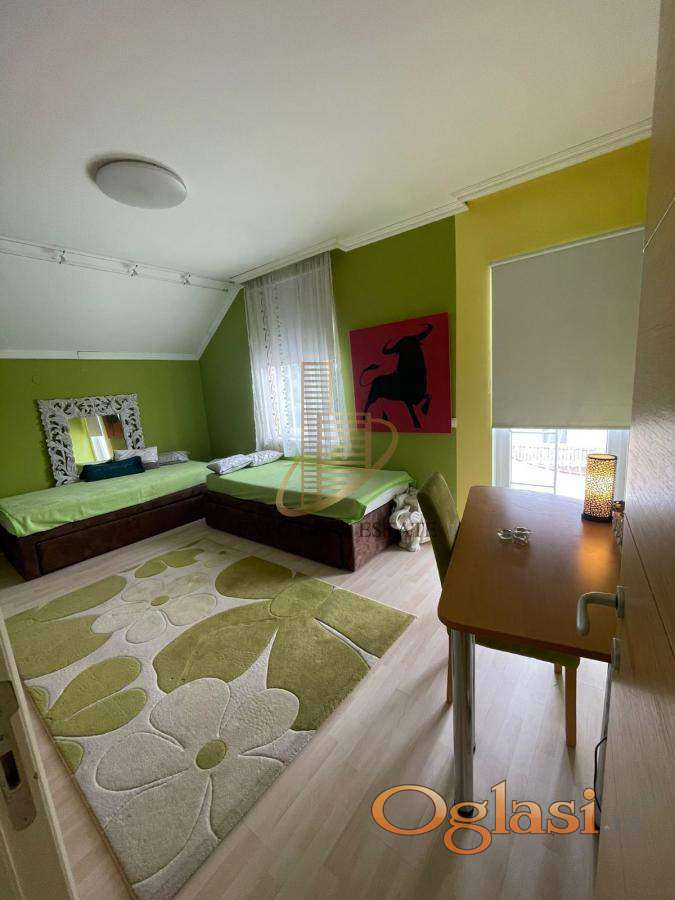 U mirnom delu Veternika, na kraju ulice bez buke i sa puno zelenila, izdaje se prostrana i potpuno nameštena kuća sa ukupno 7 soba, idealna za višečlanu porodicu ili zaposlene koji traže mir, udobnost i sigurnost.