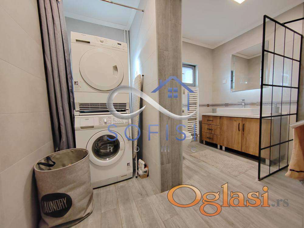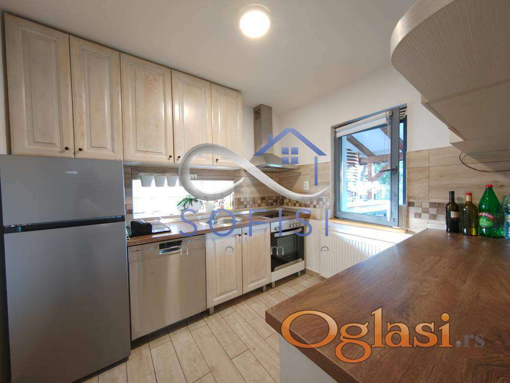 Sremska Kamenica. Mirna, slepa ulica na samoj obali Dunava. Izdvajamo iz ponude izuzetno kvalitetno građenu spratnu šestosobnu kuću površine 150m2 koja se prostire na placu od cca 900m2. Ovaj prelep, kompletno i moderno namešten stambeni prostor čine dve etaže - prizemlje i potkrovlje koje jasno razdvajaju dnevnu i spavaću zonu. U prizemlju se nalaze dnevni boravak sa trpezarijom i kaminom, odvojena, savremeno opremljena kuhinja sa ostavom i prirodnom ventilacijom, radna ili spavaća soba i još jedna nenameštena soba, veliko kupatilo sa tuš kabinom, mašinom za pranje i sušenje veša i velika dvorišna terasa sa spoljnom kuhinjom i roštiljem, na koju se nastavlja zadnje, travnato dvorište sa pogledom na zelenilo i Dunav. Lepe, drvene stepenice vode na gornju etažu funkcionalnog rasporeda - u sve prostorije se ulazi iz hodnika. Gornja etaža predstavlja spavaći blok od tri spavaće sobe, veliko kupatilo sa kadom, ostavu i manju terasu. Prelepo, veliko prednje dvorište ograđeno tujama sa kapijom na daljinski. Dovoljno prostora za parkiranje. Centralno grejanje na gas. Klimatizovana. Internet. Niski režijski troškovi. Izdavanje isključivo ozbiljnim zakupcima na duži vremenski period. Ugovor o zakupu sklapa se sa fizičkim licem.