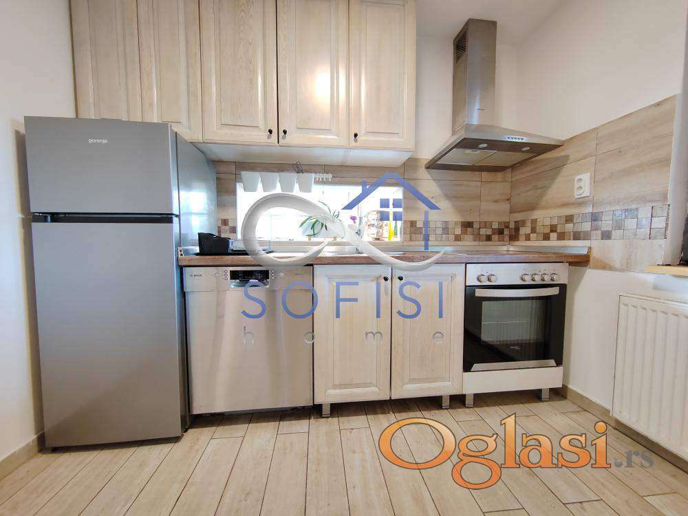Sremska Kamenica. Mirna, slepa ulica na samoj obali Dunava. Izdvajamo iz ponude izuzetno kvalitetno građenu spratnu šestosobnu kuću površine 150m2 koja se prostire na placu od cca 900m2. Ovaj prelep, kompletno i moderno namešten stambeni prostor čine dve etaže - prizemlje i potkrovlje koje jasno razdvajaju dnevnu i spavaću zonu. U prizemlju se nalaze dnevni boravak sa trpezarijom i kaminom, odvojena, savremeno opremljena kuhinja sa ostavom i prirodnom ventilacijom, radna ili spavaća soba i još jedna nenameštena soba, veliko kupatilo sa tuš kabinom, mašinom za pranje i sušenje veša i velika dvorišna terasa sa spoljnom kuhinjom i roštiljem, na koju se nastavlja zadnje, travnato dvorište sa pogledom na zelenilo i Dunav. Lepe, drvene stepenice vode na gornju etažu funkcionalnog rasporeda - u sve prostorije se ulazi iz hodnika. Gornja etaža predstavlja spavaći blok od tri spavaće sobe, veliko kupatilo sa kadom, ostavu i manju terasu. Prelepo, veliko prednje dvorište ograđeno tujama sa kapijom na daljinski. Dovoljno prostora za parkiranje. Centralno grejanje na gas. Klimatizovana. Internet. Niski režijski troškovi. Izdavanje isključivo ozbiljnim zakupcima na duži vremenski period. Ugovor o zakupu sklapa se sa fizičkim licem.