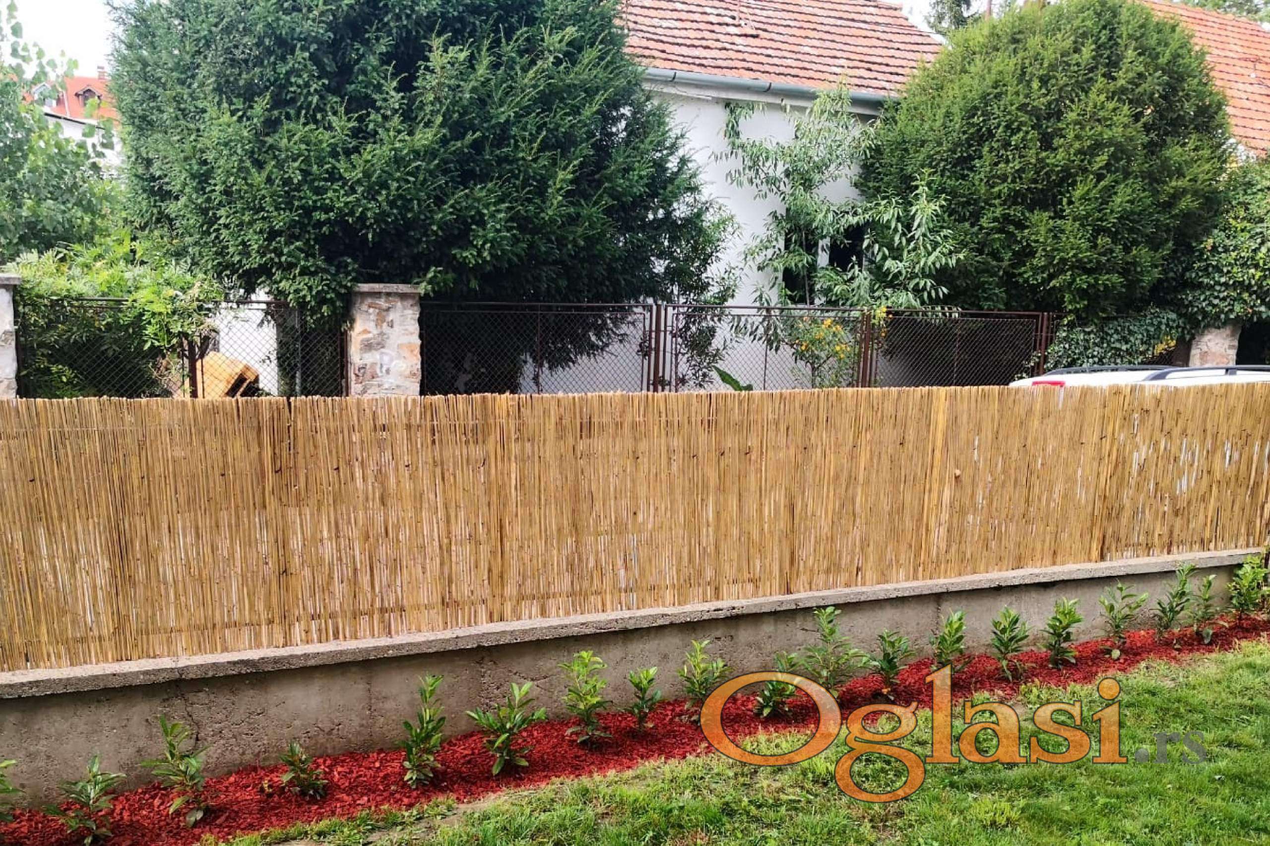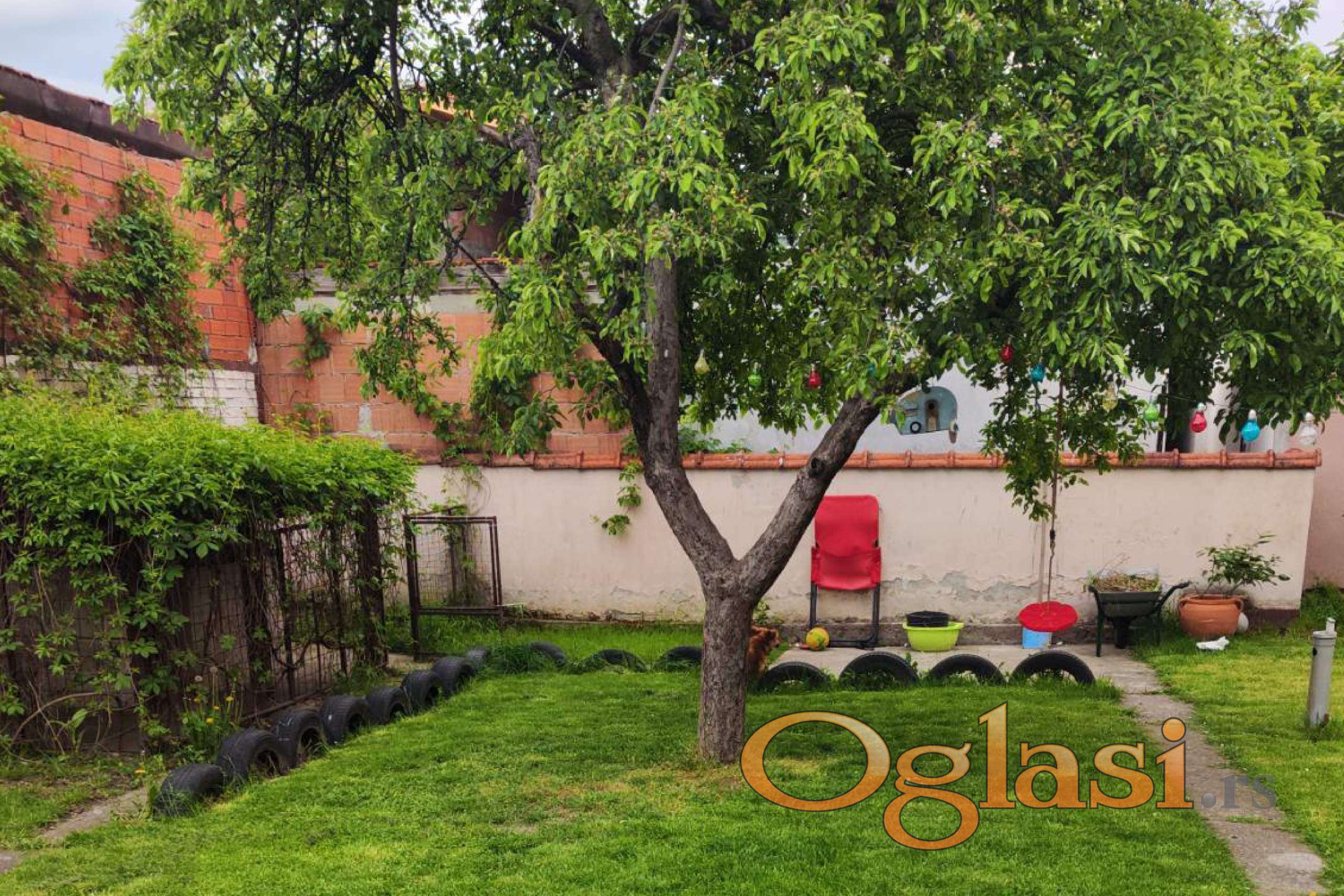 Pored objekata na placu ima veća kućica za psa koja je obrasla puzavicom, ručni bunar, dvorišna česma sa gradskom vodom, jabuka koja rađa, dva visoka bora koja daju hladovinu za ljuljaške i u frontu celom dužinom posađena živa ograda od lovor višnje 2019 godine, sada je već preko 1m visine, redovno orezivana u formu ograde. Najveći deo bašte je pod travnjakom, što daje mogućnost kupcu da uredi baštu po svojoj volji, ima dovoljno prostora za saletlu i bazen.