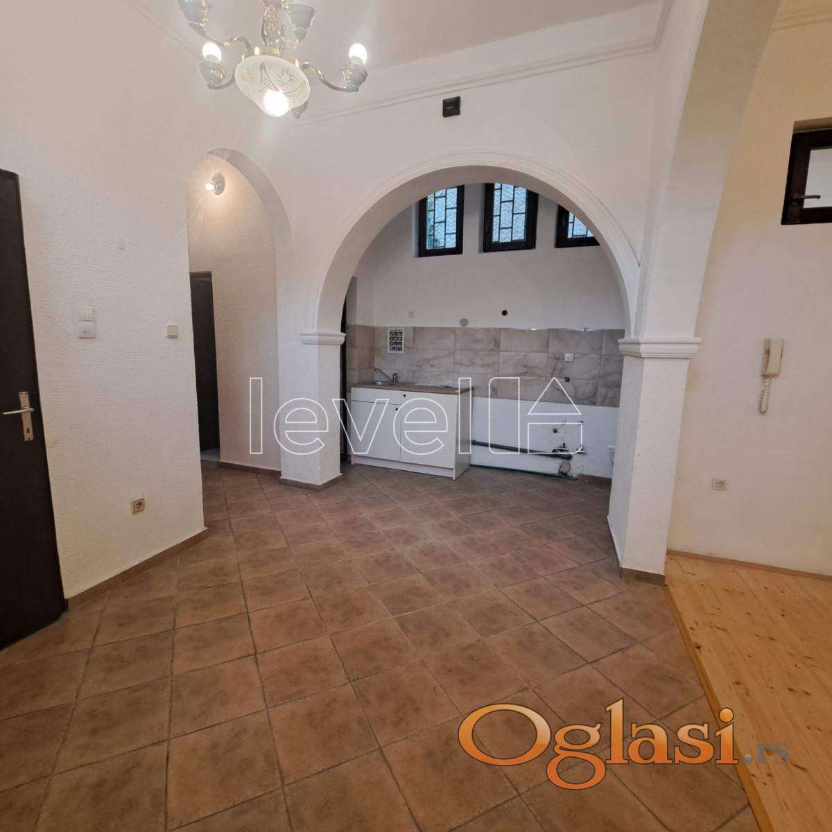 Kuća se sastoji iz dva nivoa, sa impozantnom visinom plafona od 3,40 m i elegantnim stepeništem koje krasi starinski masivni luster, dajući prostoru poseban karakter i prestiž.