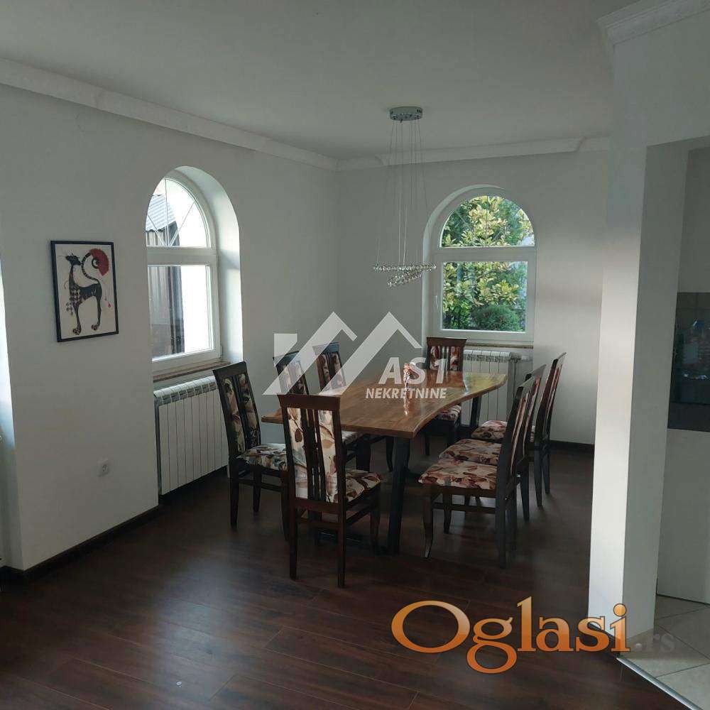 IZDAJE SE KUCA KOD LIPOVOG GAJA ulica Milice Rakic 225m2 cetiri spavace sobe i dva kupatila U prizemlju garaza ,kupatilo,soba ,dnevna soba kuhinja i ostava.Na spratu wc,kupatilo,4 sobe,balkon i garderober. Grejanje na gas. Jak internet i tv. Kuca poseduje sve za zivot porodice. cena 1600eur kontakt 069 2888 507