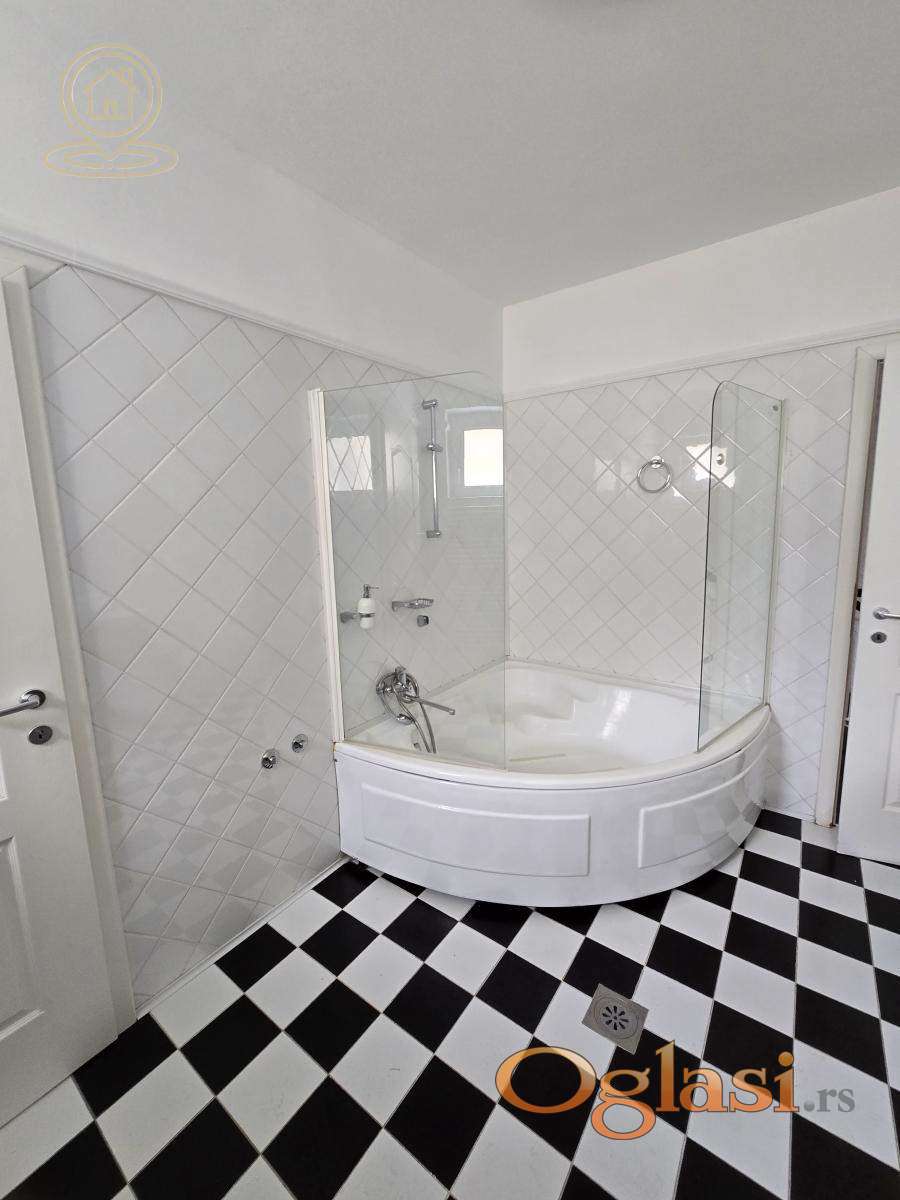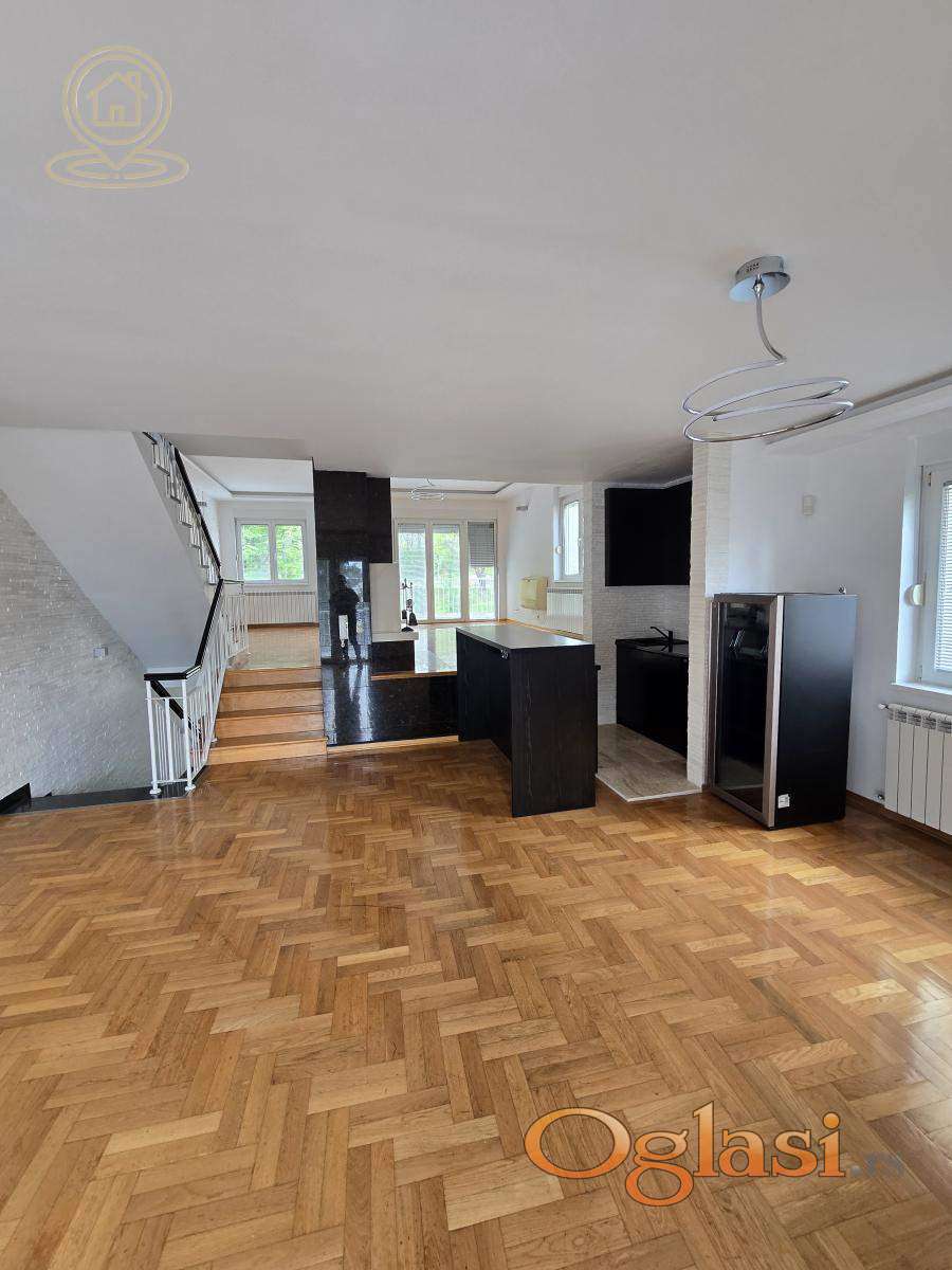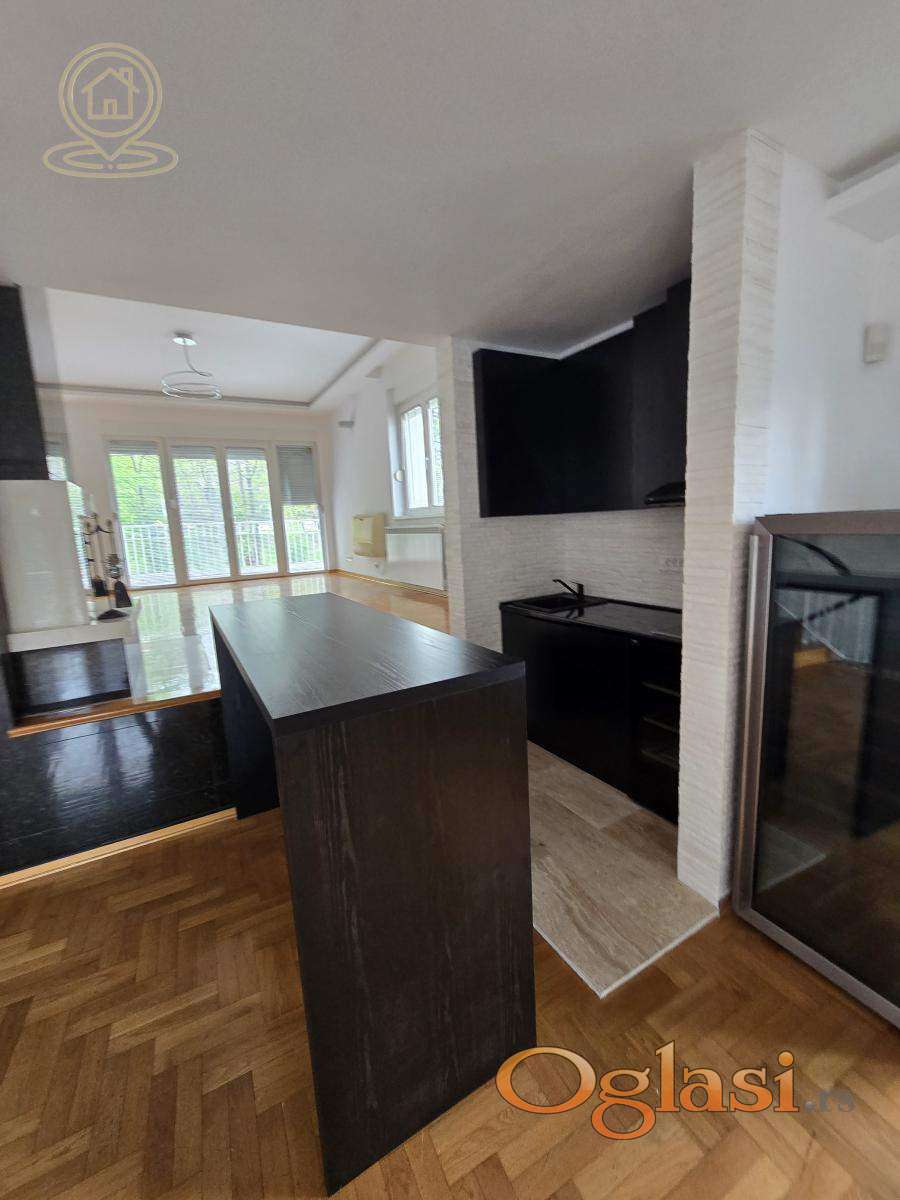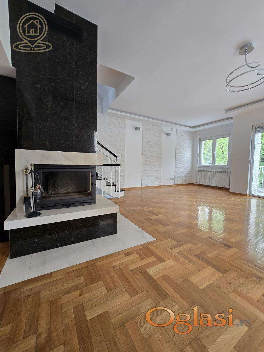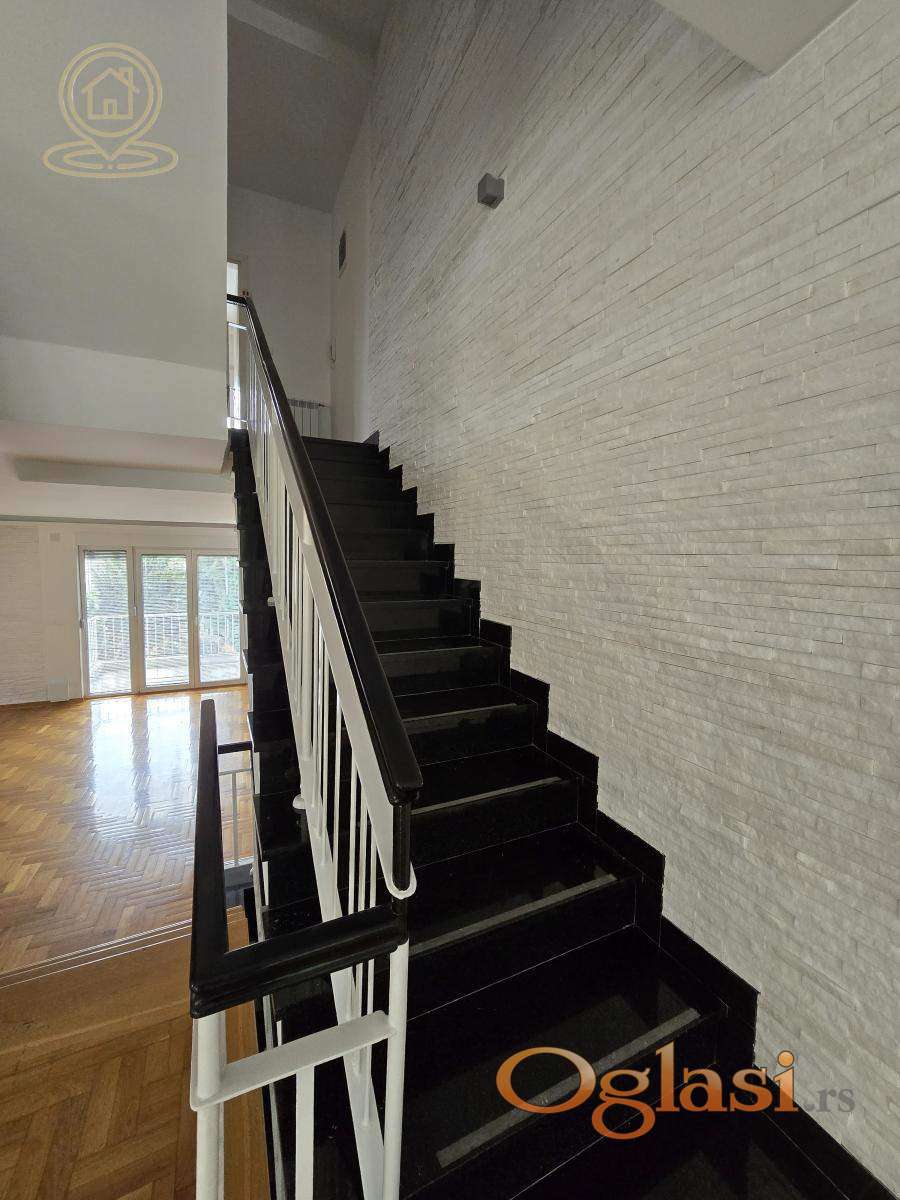 Izdaje se ekskluzivna kuća površine 300 m², na placu od 3 ara, u srcu Dedinja – jednoj od najelitnijih i najsigurnijih lokacija u Beogradu. Ova reprezentativna vila kombinuje udobnost porodičnog doma sa elegancijom rezidencijalnog ili poslovnog prostora najvišeg ranga. Osnovne karakteristike: * Prostrani dnevni boravak od 80 m², na dva nivoa, sa mermernim kaminom * Tri spavaće sobe + veliko potkrovlje * Tri kupatila (jedno sa mermernim detaljima), četiri mokra čvora * Velika glavna kuhinja + dodatna servisna kuhinja * Vešernica, ostava, ugradni plakari * Pet terasa sa pogledom na uređeno zelenilo s obe strane kuće * Kompletna klimatizacija (air condition u svim prostorijama) * Grejanje i topla voda na struju i gas (alternativno), centralni bojler Bezbednost i infrastruktura: * Kuća je pokrivena kamerama i ima 24/7 bezbednosni monitoring * Mermerni ulaz i detalji visokog standarda u celom enterijeru * Garaža + dodatni parking ispred garaže i kuće Eksterijer: - Uređeno dvorište sa cvećem, drvećem i ukrasnim zelenilom, sa obe strane kuće - privatnost, mir i sigurnost zagarantovani. Dodatno: - Kuća je prethodno iznajmljivana visokim diplomatskim predstavnicima vodećih zapadnoevropskih zemalja - Moguća adaptacija za rezidencijalne, ali i elegantne poslovne potrebe (ambasade, predstavništva, kompanije). Za dodatne informacije i razgledanje, stojimo vam na raspolaganju. Agencijska provizija u skladu sa opštim uslovima poslovanja.