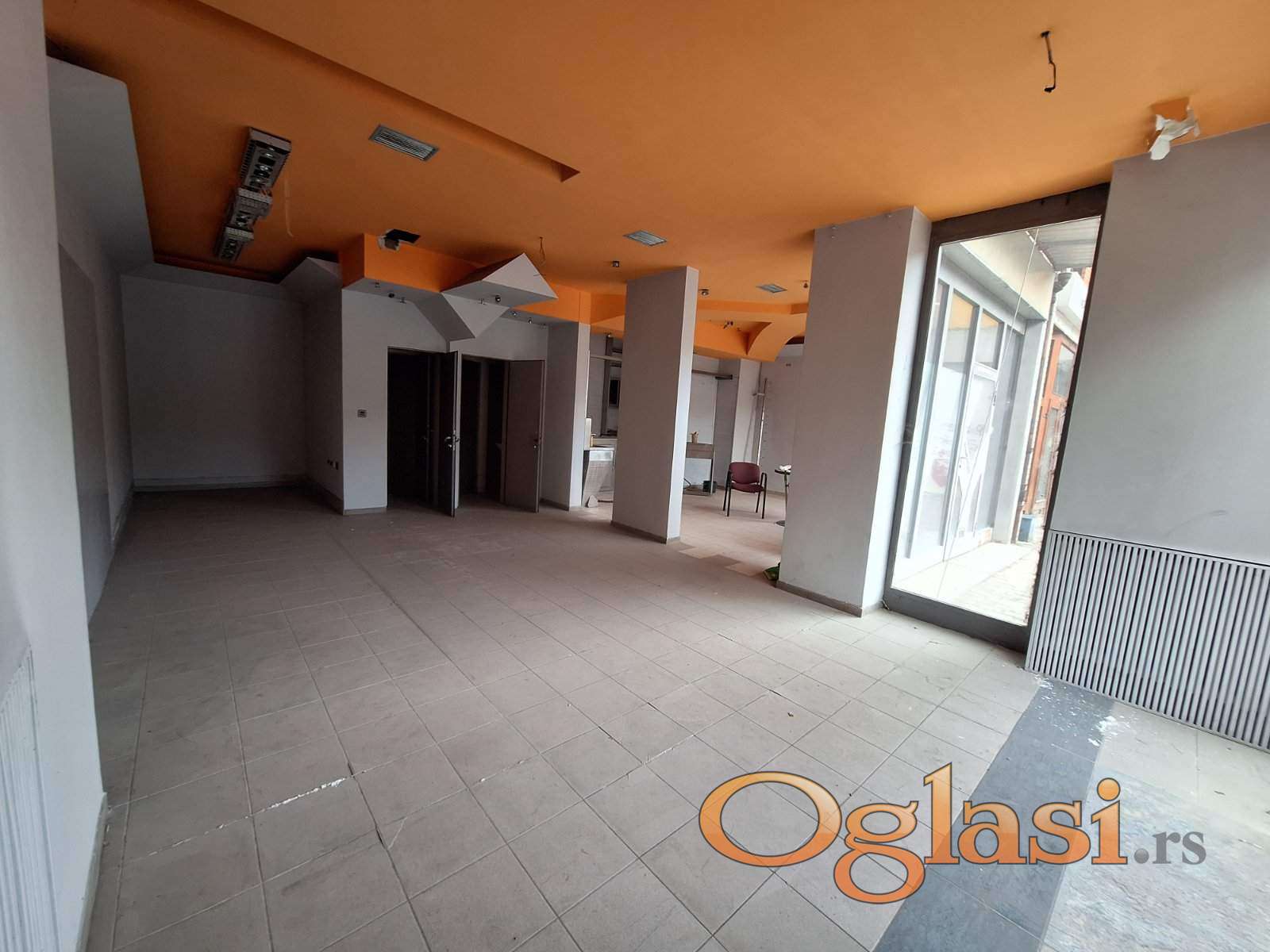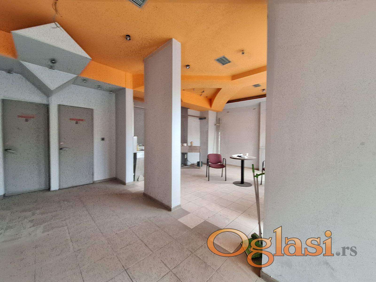 Dobro osvetljen, vidljiv sa mogućnošću postavljanja velike reklame, ceo prednji deo lokala u portalima.