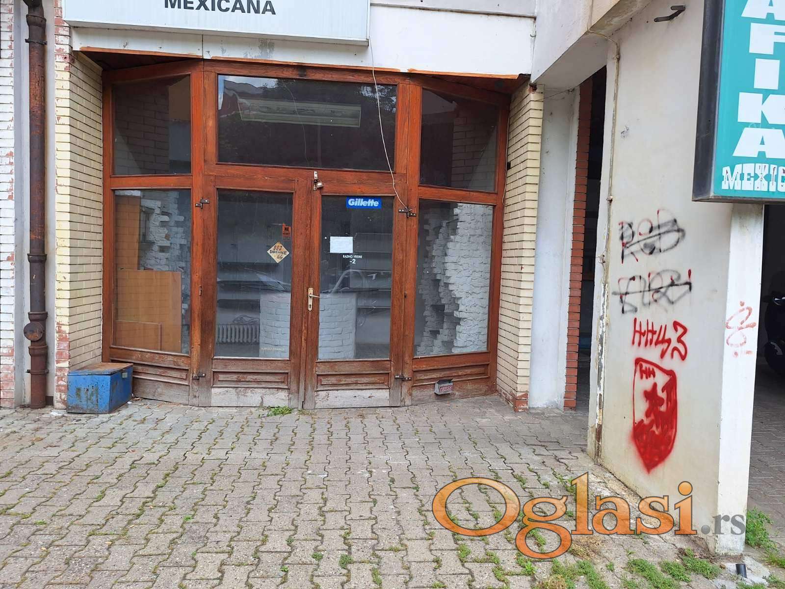 Dobro osvetljen, vidljiv sa mogućnošću postavljanja velike reklame, ceo prednji deo lokala u portalima.