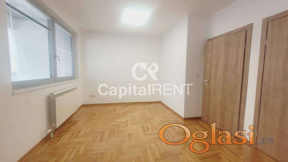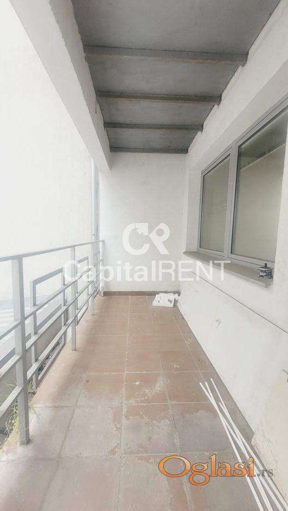Izdaje se prazan stan u novijoj zgradi koji se sastoji od hodnika,4 kancelarije ,kupatila,pomoćnog toaleta,velike terase.Kuhinja je opremljena.