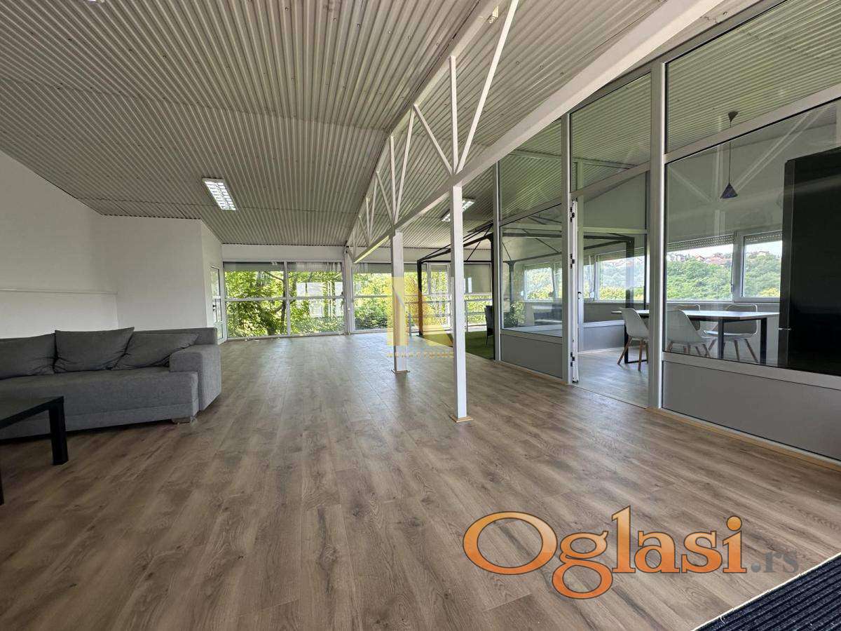 - Kancelarijski prostor se sastoji od open space prostora sa izdvojenom kuhinjom, kupatila i ostave