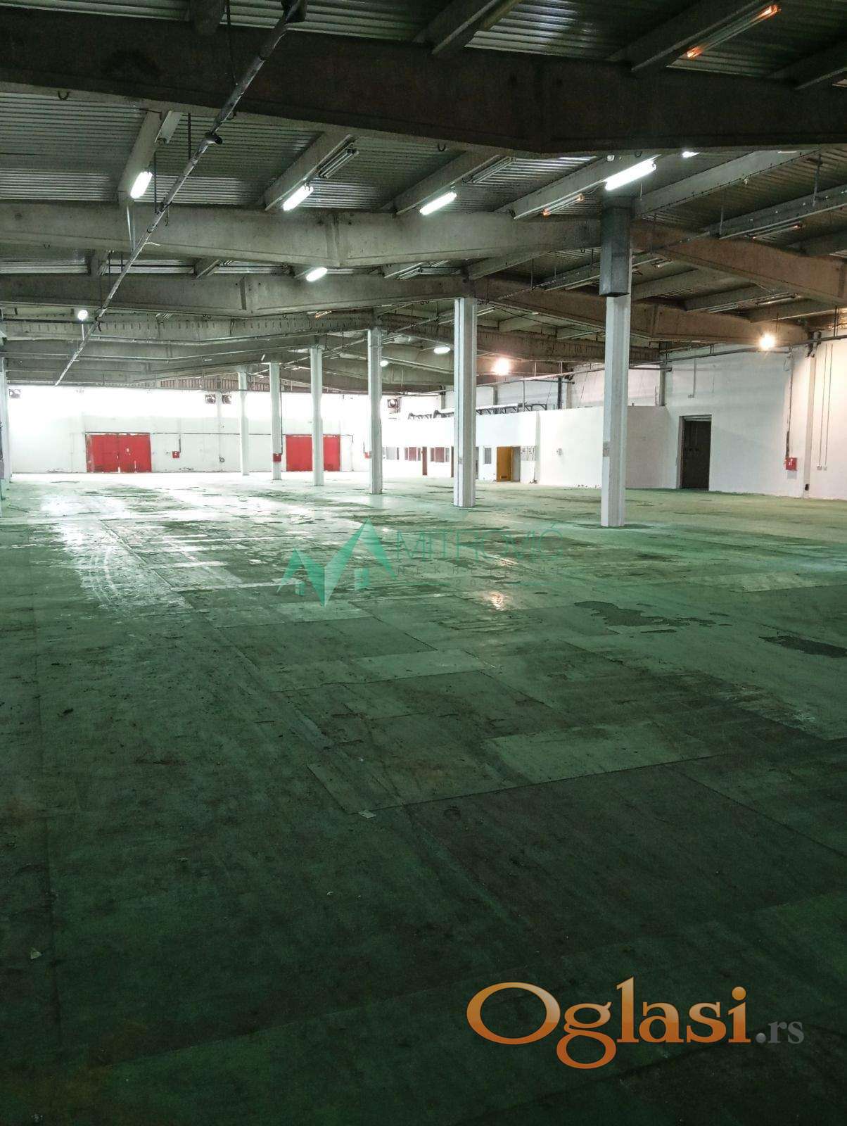 Prostor oko samog magacina je veliki i pogodan je za skladištenje robe koja se može skladištiti na otvorenom, kao i za parkiranje automobila i drugih vozila. Na glavnoj kapiji se nalazi upravna zgrada površine 235m2 u kojoj se nalaze kancelarije kao i portirnica u kojoj je smešteno obezbedjenje objekta. U sklopu magacina se nalazi i hladnjača površine 395m2 sa rashladnim sistemom u funkciji. Magacin poseduje 18 teretnih ulaza (vrata) kao i utovarne rampe. Prilaz šleperima i ostalim teretnim i putničkim vozilima je obezbedjen kapijama sa tri strane magacina. Poseduje agregat, klima uređaje u svakoj kancelariji. Magacin se nalazi na lokaciji koja poseduje odličnu vezu sa auto putem i gradom. Magacinski prostor je prazan i dostupan je za useljenje. Magacin je kompletno ogradjen i ima fizičko obezbedjenje. Moguća je adaptacija magacinskog prostora shodno potrebama poslovanja uz obaveštenje i dogovor sa zakupodavcem.