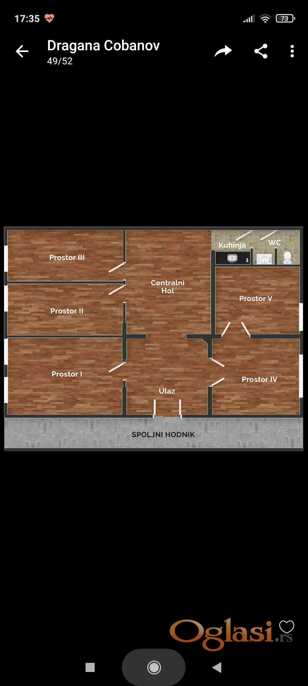 Tri sobe, cajna kuhinja i drugi toalet u skici prostora nisu prikazane.