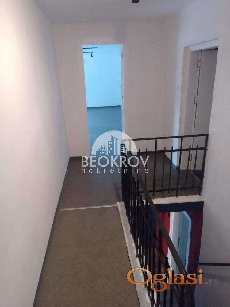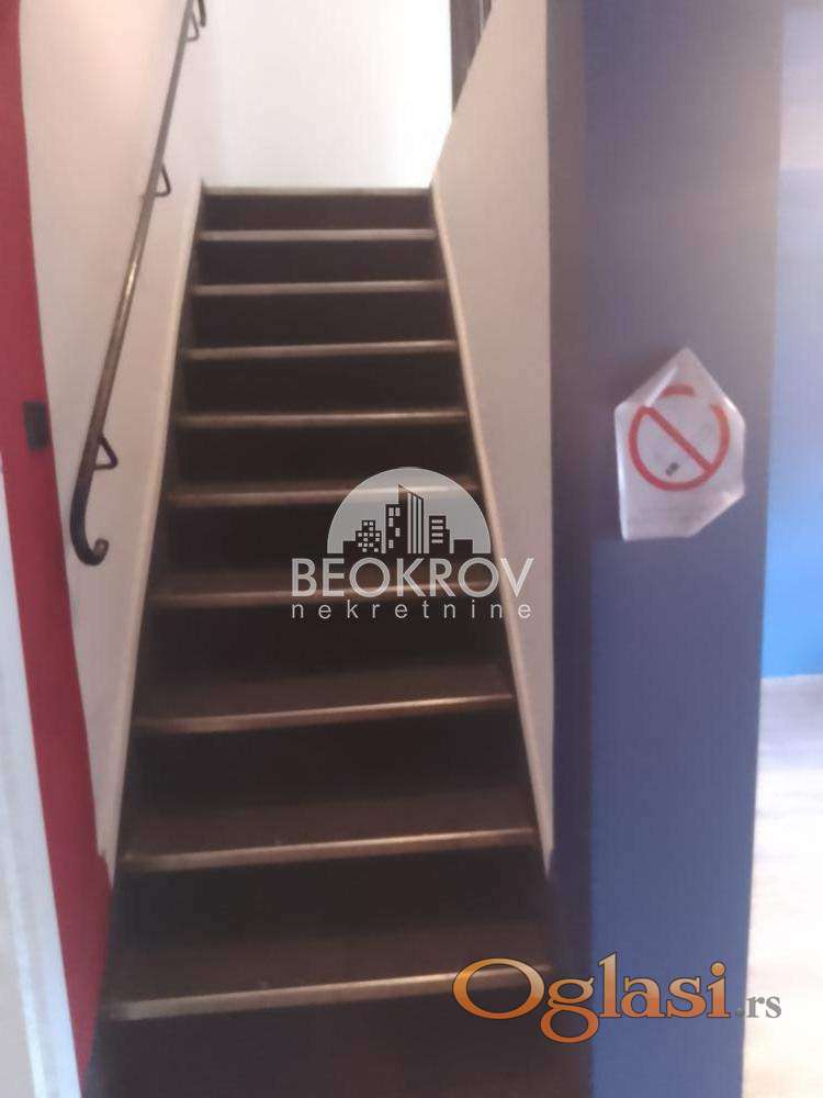 Sastoji se od prizemlja, cca 32m2 ( 3 prostorije i toalet) i sprata, cca 58m2 ( 3 prostorije i hodnik). Ima izlog, rolo vrata, police, stolove, ormane, sef...U prizemlju su ulazna alu vrata, novi izlog-staklo, rolo vrata, dok je na spratu pvc stolarija. Moguće je koristiti javni parking na ulici. Renoviran pre 2 godine i delimično namešten ormanom, stolovima i stolicama. Označen je deo grada. Zakupac plaća proviziju u iznosu u visini od pola mesečne zakupnine. 069/BEOKROV