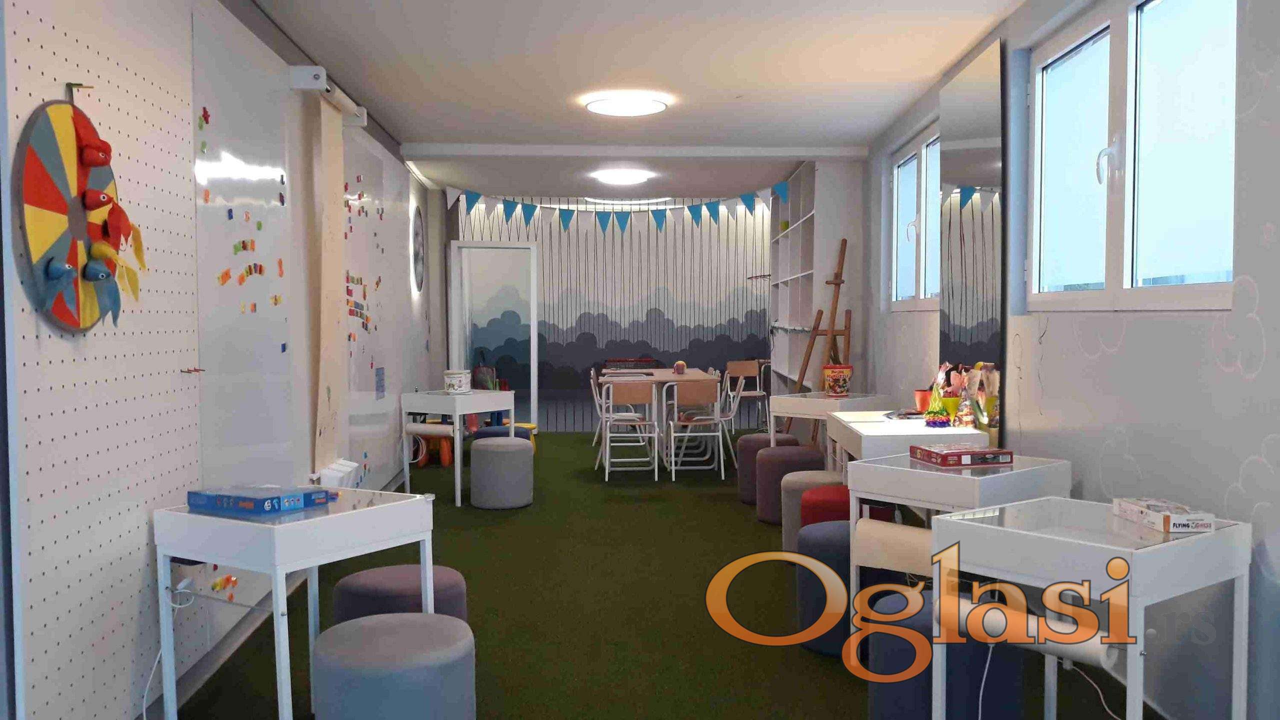Izdajem renoviran i namešten prostor površine 145 m2 u Mirijevu I, Beograd. Prostor je idealan i trenutno opremljen za školicu, dnevni boravak, igraonicu, vrtić ali se može koristiti i za druge delatnosti kao što su banke, apoteke, ordinacije, agencije, kancelarijski prostori i slično. Sadrži tri radne prostorije, potpuno opremljen prostor za učionicu, deo za sportsku aktivnost i kreativni prostor, dodatnu prostoriju sa ormarićima za odlaganje stvari, dva toaleta, telefon, internet, video nadzor i 2 inverter klime. Bez dodatnog ulaganja, spremno za pocetak rada!