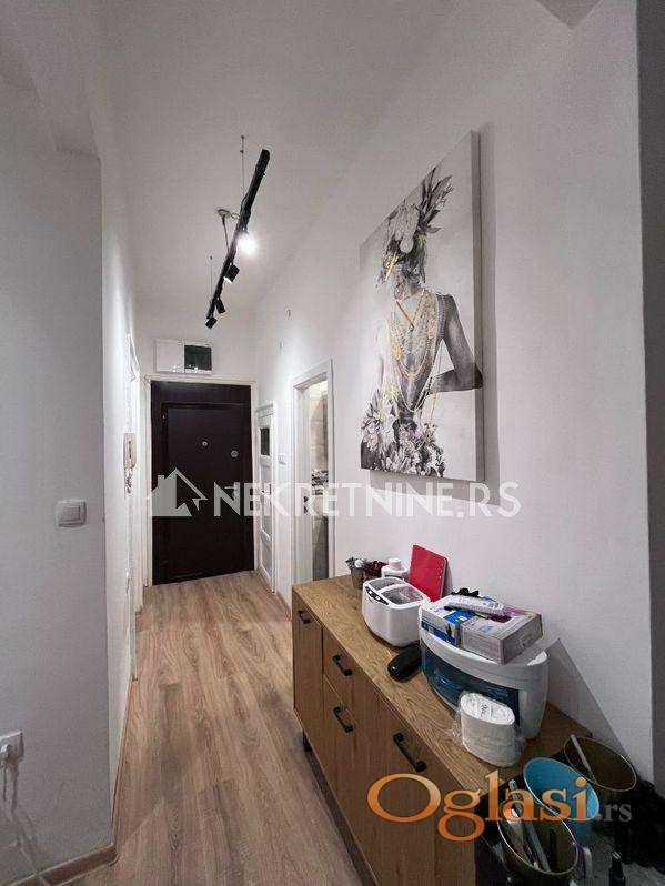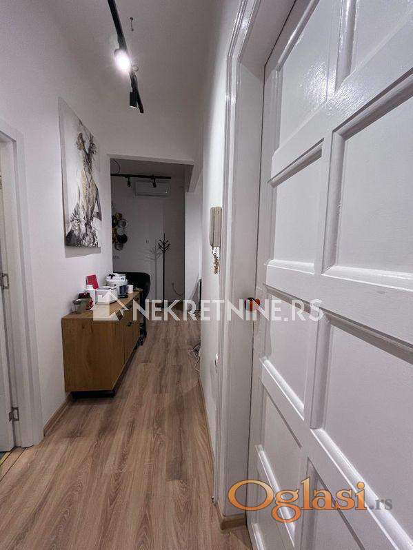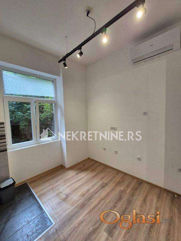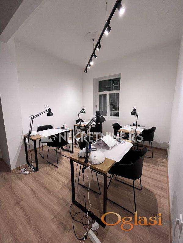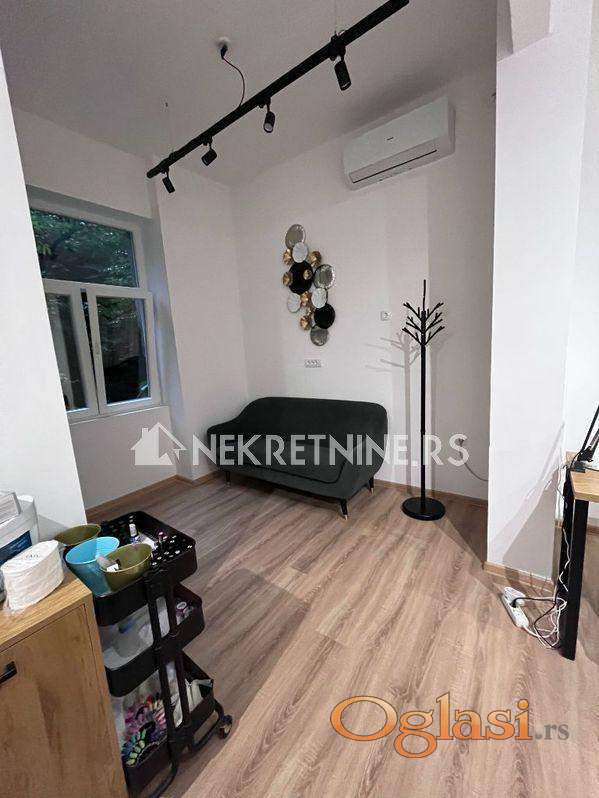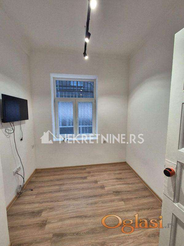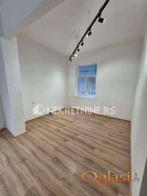 Potpuno renoviran stan od 40kvm u centru na Zelenom vencu u stambenoj zgradi na 1. spratu. Stan se izdaje dugoročno isključivo za poslovni prostor za mirnu delatnost tipa salona lepote,kancelarija,agencija i slično. Sastoji se od hodnika, jedne posebne sobe, jedne veće sobe, čajne kuhinje, kupatila i ostave. Grejanje na inverter klimu i norveški radijator, režije su male, a struja po utrošku. Za dugoročan zakup moguća korekcija cene.