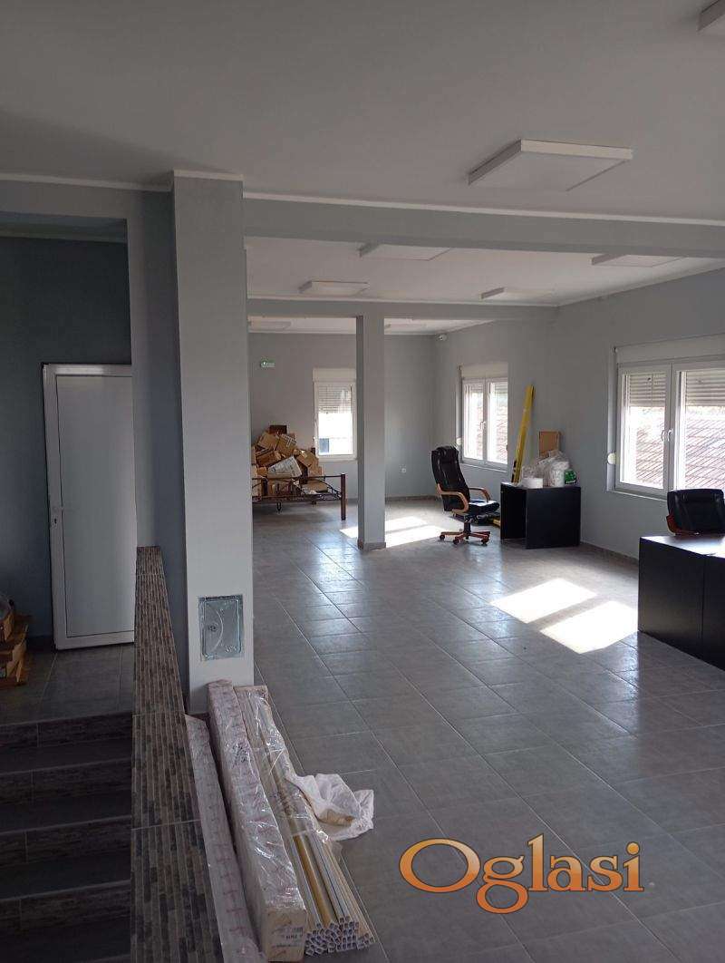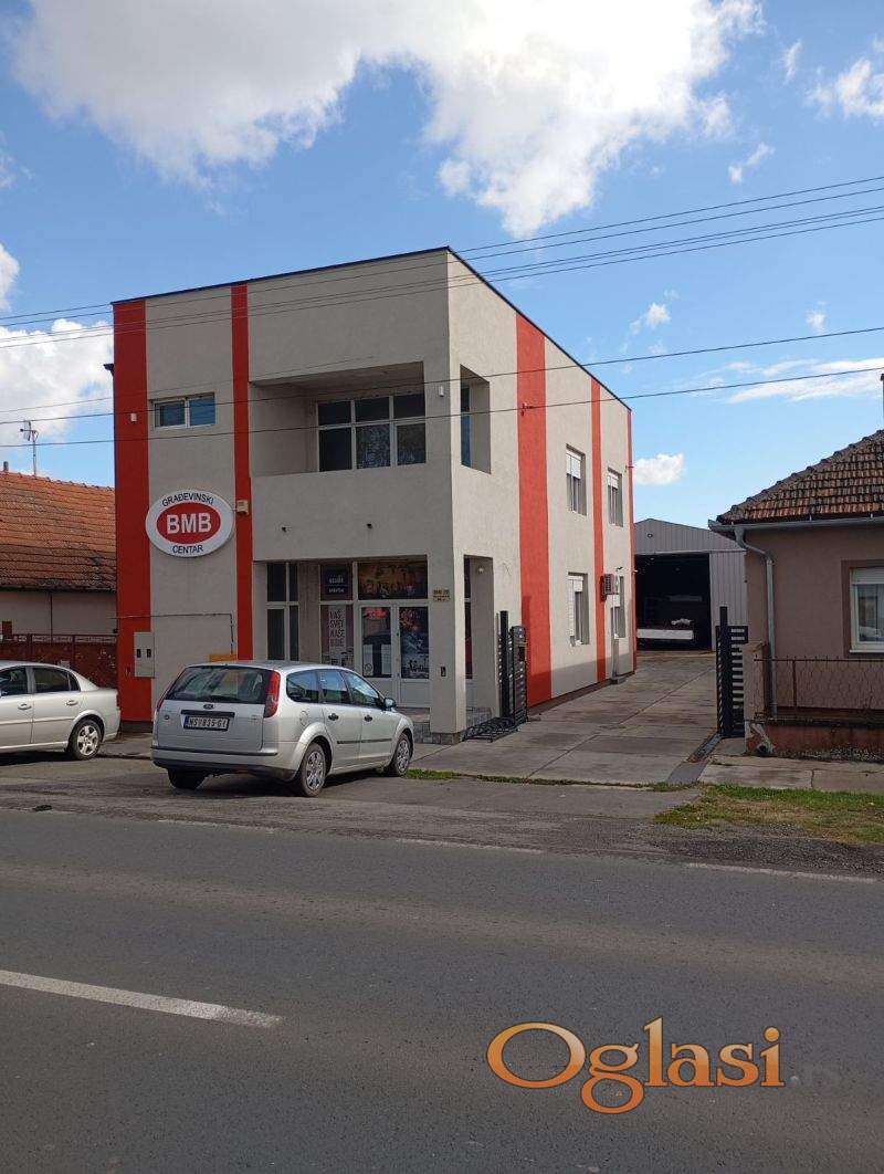 Nudimo vam odličnu priliku za vašu firmu, poslovni prostor od cca 180m2 u dve ertaže. Objekat je novoizgrađen, sa termoizolacijom, PVC stolarijom, sanitarnim čvorovima i čajnom kuhinjom, na objektu je postavljen video nadzor i alarm. Iza poslovnog objelta nalazi se hala odn300m2. Plac je površine 661m2, pristup hali je izbetoniran, a poslovni prostor je ulično orjentisan.