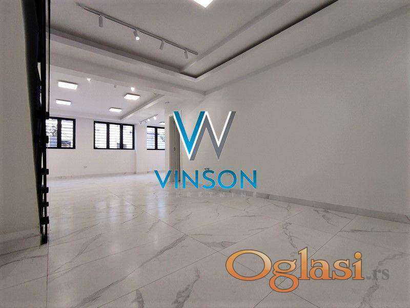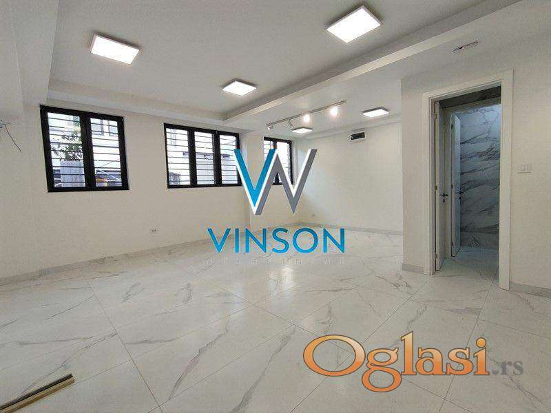 Novi Sad, Centar (Spens). Odličan poslovni prostor nadomak Osnovog suda i Spensa. Pozicioniran u suterenu novoizgrađenog stambeno-poslovnog objekta visokog kvaliteta gradnje. Ovaj prostor ukupne površine 65m² predstavlja jednu veliku prostoriju koja se može pregraditi na tri manje. Jedan toalet sa pretprostorom i mogućnost postavljanja čajne kuhinje. Kvalitetna keramika i moderna rasveta. Visina plafona preko 3m. Podno grejanje. Dvostrano orijentisan. Ugovor o zakupu se sklapa sa fizičkim licem. Isključivo za mirne i tihe delatnosti. Useljiv odmah. (Vinson nekretnine, Novi Sad, Reg. br. posrednika: 1085)