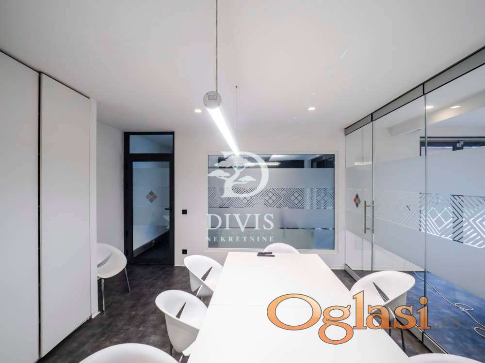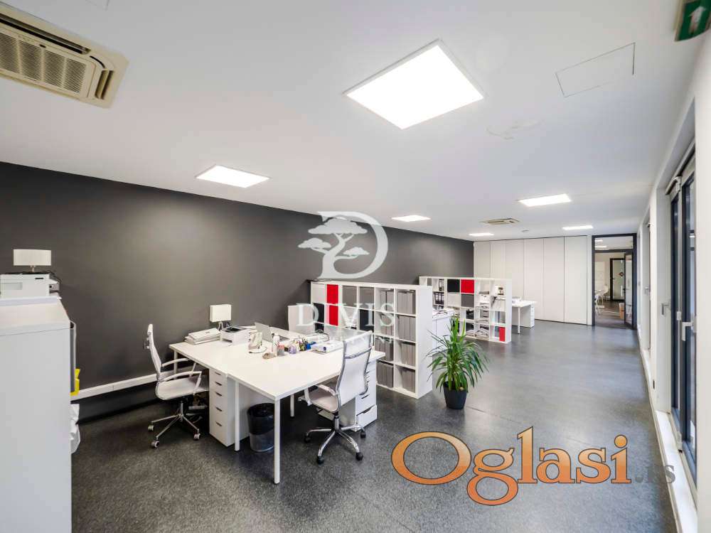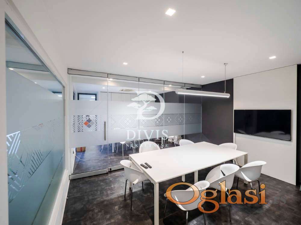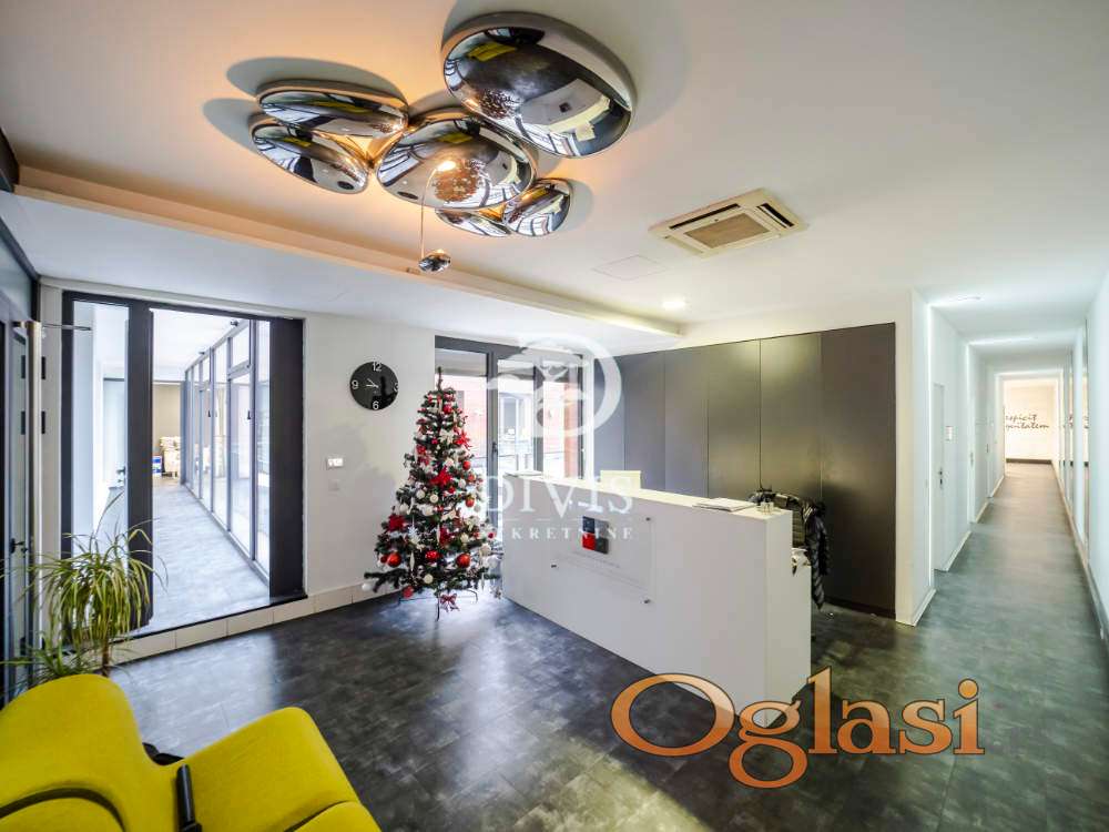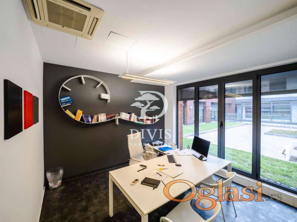 Ukupno je organizovan kroz 10 zasebnih kancelarija, prijemni prostor, čajnu kuhinju i dva toaleta. Objekat je pod stalnim video nadzorom i fizičkim obezbeđenjem 24/7, što obezbeđuje visok nivo sigurnosti i komfora za zaposlene i klijente.