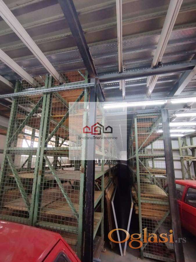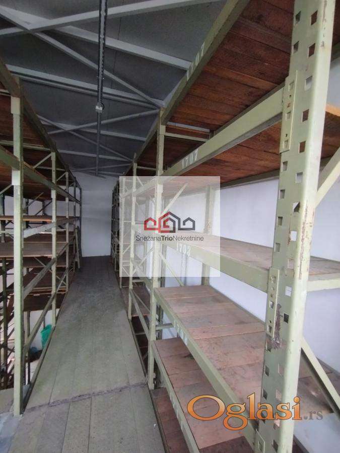 Magacinski prostor od 250m2 raspoređen na 2 etaže opremljen sa rafovima sa visinom od 3,5m.